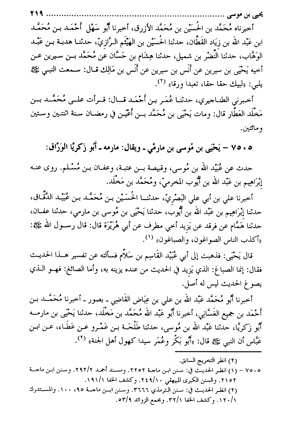 7505- يَحْيَى بْن مُوسَى بْن مَارِمِّي- ويُقال: مارِمَّه- أَبُو زكريا الوراق: