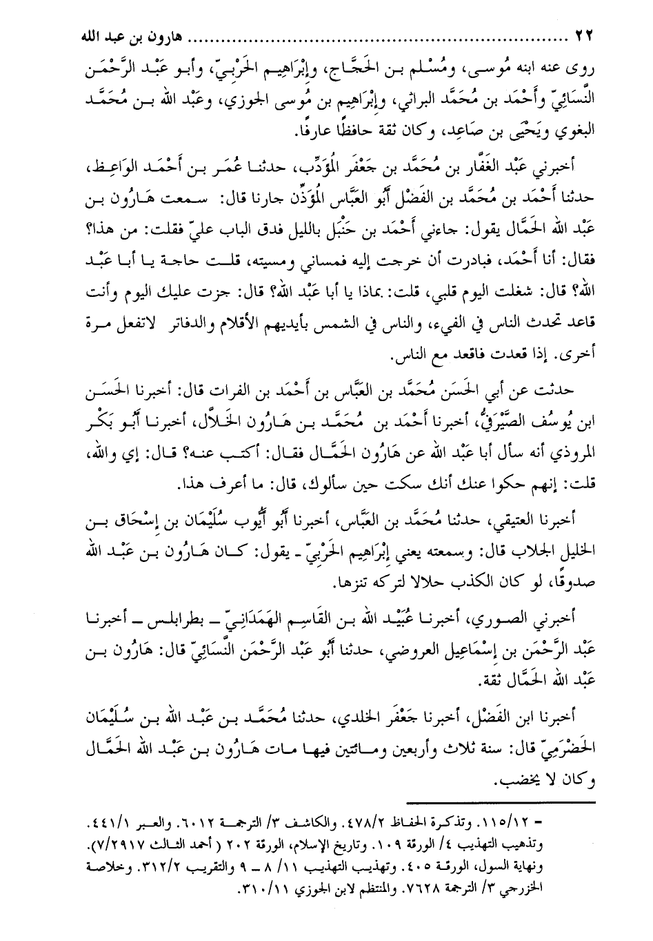 أَخْبَرَنِي الصوري، أخبرنا عبيد الله بن القاسم الهمدانيّ- بطرابلس- أخبرنا عبد الرّحمن بن إسماعيل العروضي، حَدَّثَنَا أبو عبد الرحمن النسائي قال: هارون بن عبد الله الحمال ثقة.
