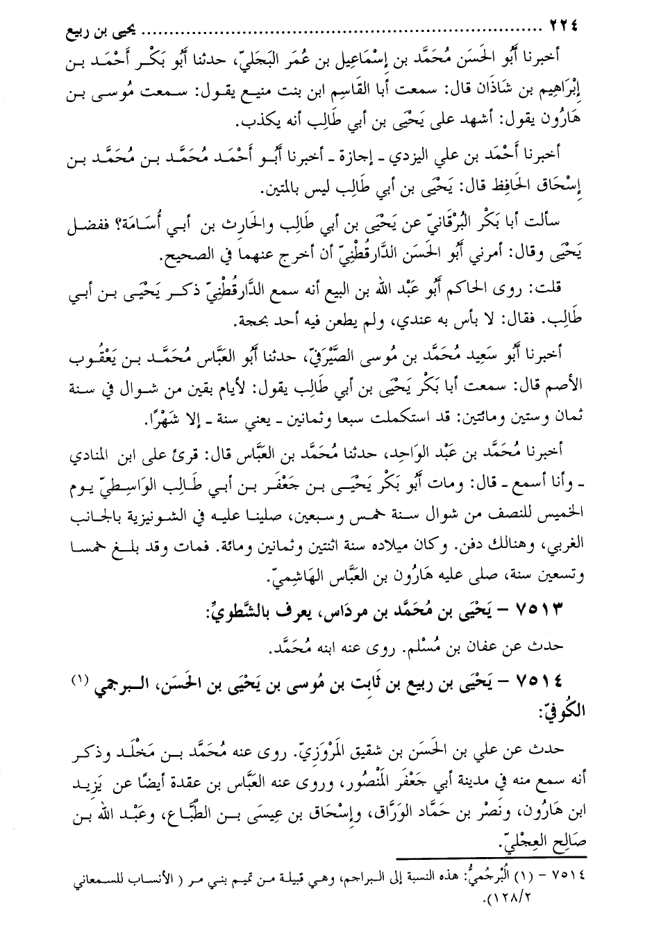 7514- يحيى بن ربيع بن ثابت بن موسى بن يحيى بن الحسن، البرجمي [1] الكوفي: