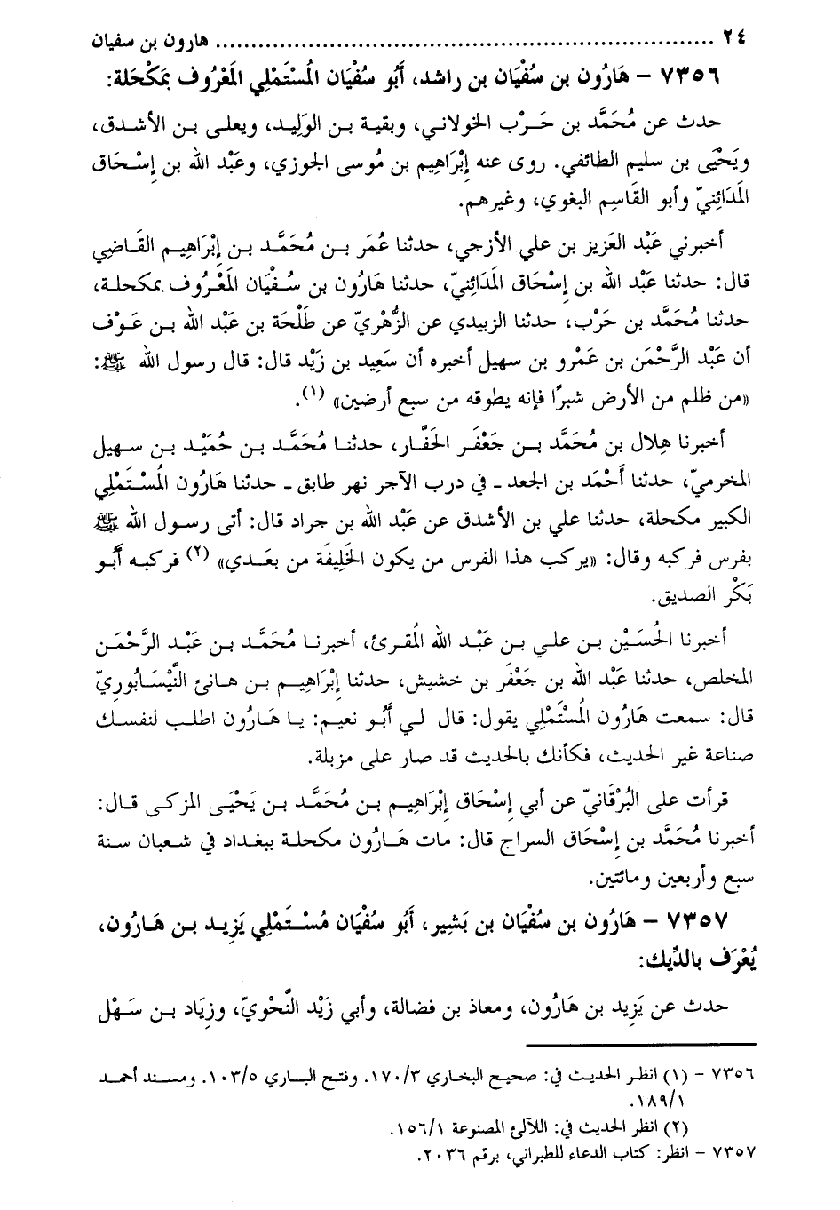 7357- هارون بن سفيان بن بشير، أبو سفيان مستملي يزيد بن هارون، يعرف بالديك [3] :