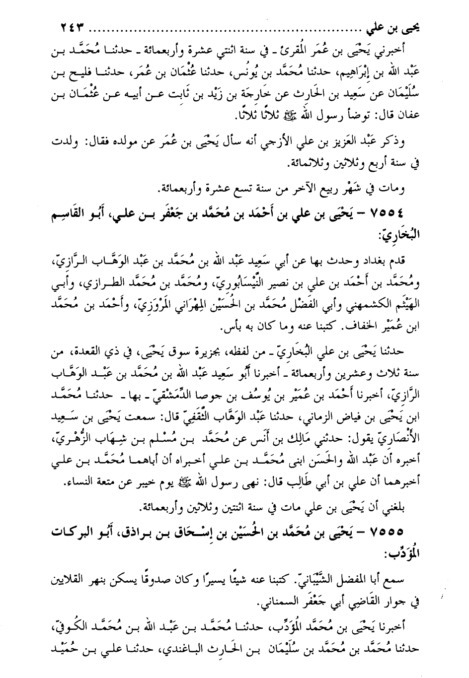 7554- يحيى بْن عليّ بْن أَحْمَد بْن مُحَمَّد بْن جعفر بن علي، أبو القاسم البخاري: