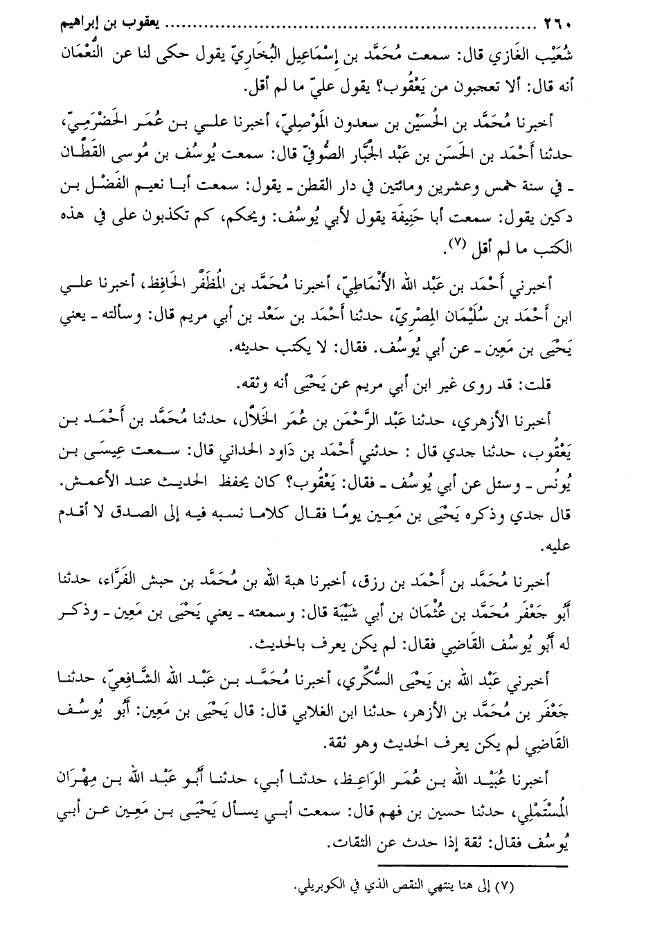 أَخْبَرَنَا مُحَمَّدُ بْنُ الْحُسَيْنِ بْنِ سَعْدُونَ الْمَوْصِلِيُّ، أخبرنا علي بن عمر الحضرميّ، حَدَّثَنَا أَحْمَدُ بْنُ الْحَسَنِ بْنِ عَبْدِ الْجَبَّارِ الصُّوفِيُّ قَالَ: سمعتُ يوسف بْن مُوسَى القطان- فِي سنة خمس وعشرين ومائتين فِي دار القطن- يَقُولُ: سَمِعْتُ أَبَا نُعَيْم الْفَضْل بْن دكين يَقُولُ: سَمِعْتُ أَبَا حنيفة يَقُولُ لأبي يوسف: ويحكم، كم تكذبون عليّ فِي هذه الكتب ما لم أقل [1] .