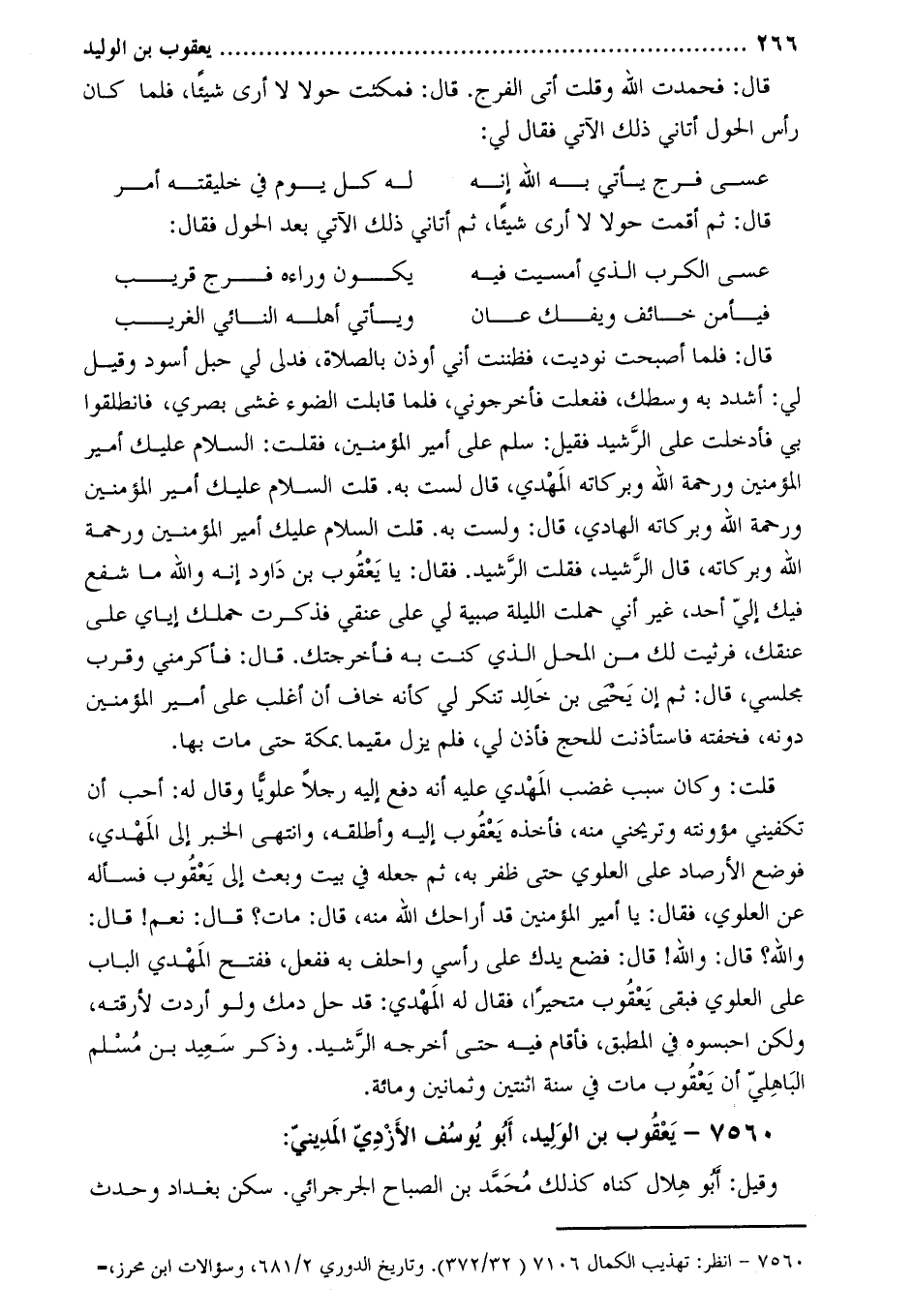 [1] 7560- انظر: تهذيب الكمال 7106 (32/372) . وتاريخ الدّوري 2/681، وسؤالات ابن محرز، -