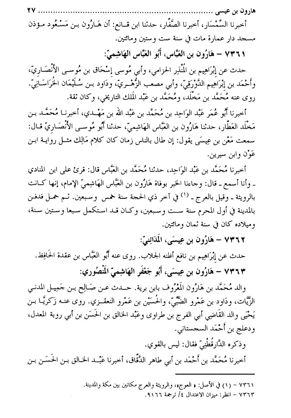 7363- هارون بْن عيسى، أَبُو جَعْفَر الهاشمي المنصوري [2] :
