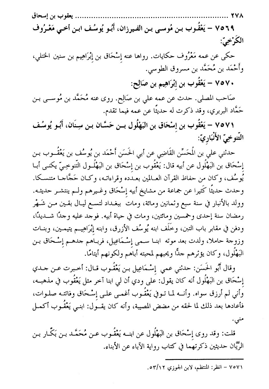 7571- يعقوب بْن إِسْحَاق بْن البهلول بْن حسان بْن سنان، أبو يوسف التنوخي الأنباري [1] :
