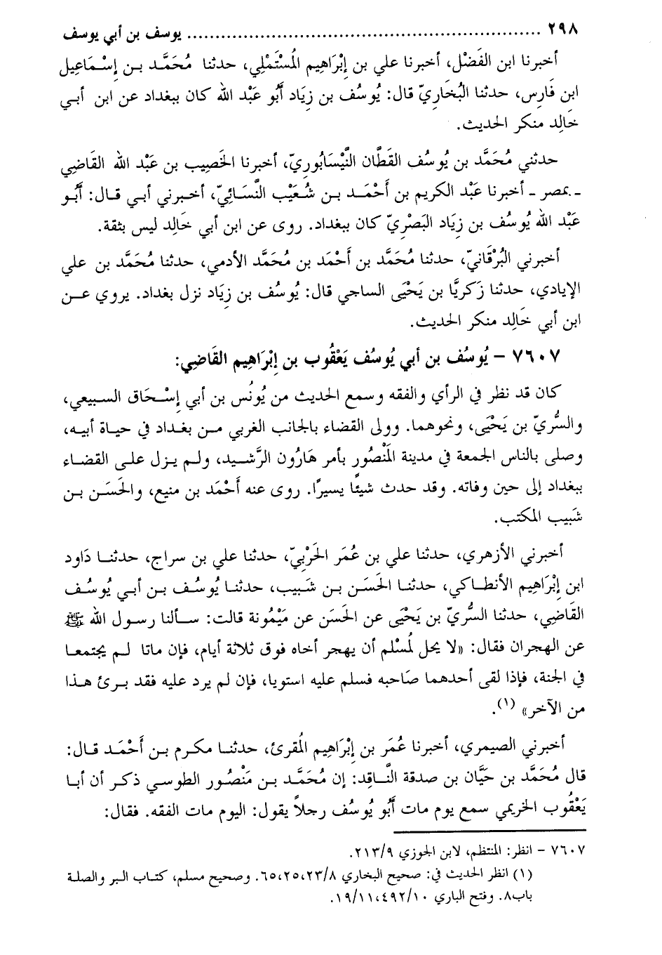 7607- يوسف بْن أَبِي يُوسُف يَعْقُوب بْن إِبْرَاهِيم الْقَاضِي [1] :