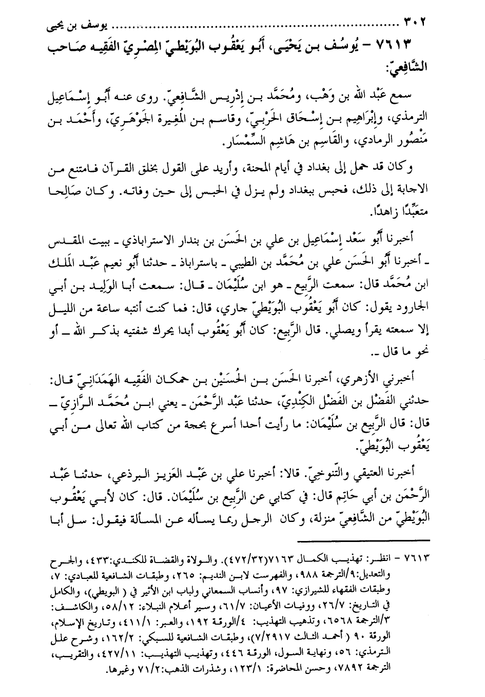 7613- يوسف بن يحيى، أبو يعقوب البويطي المصري الفقيه صاحب الشافعي [1] :