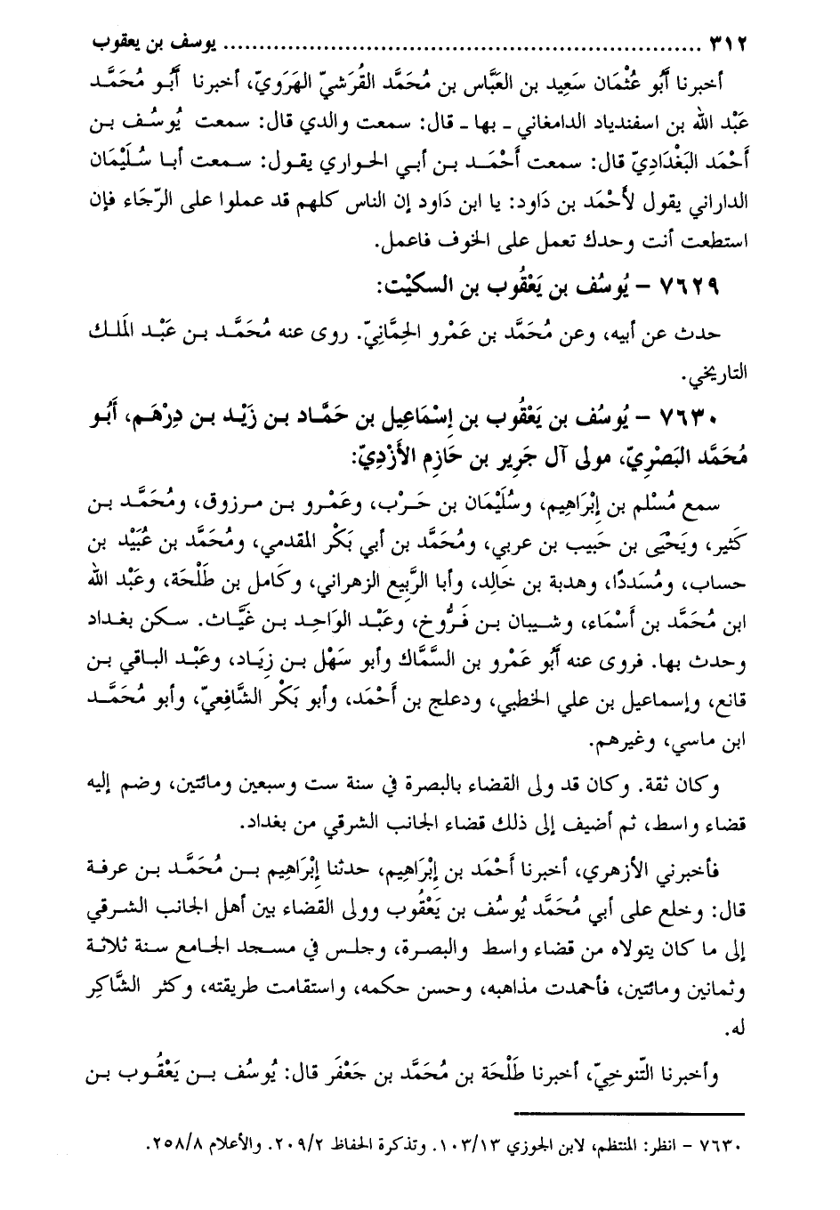 [1] 7630- انظر: المنتظم، لابن الجوزي 13/103. وتذكرة الحفاظ 2/209. والأعلام 8/258.