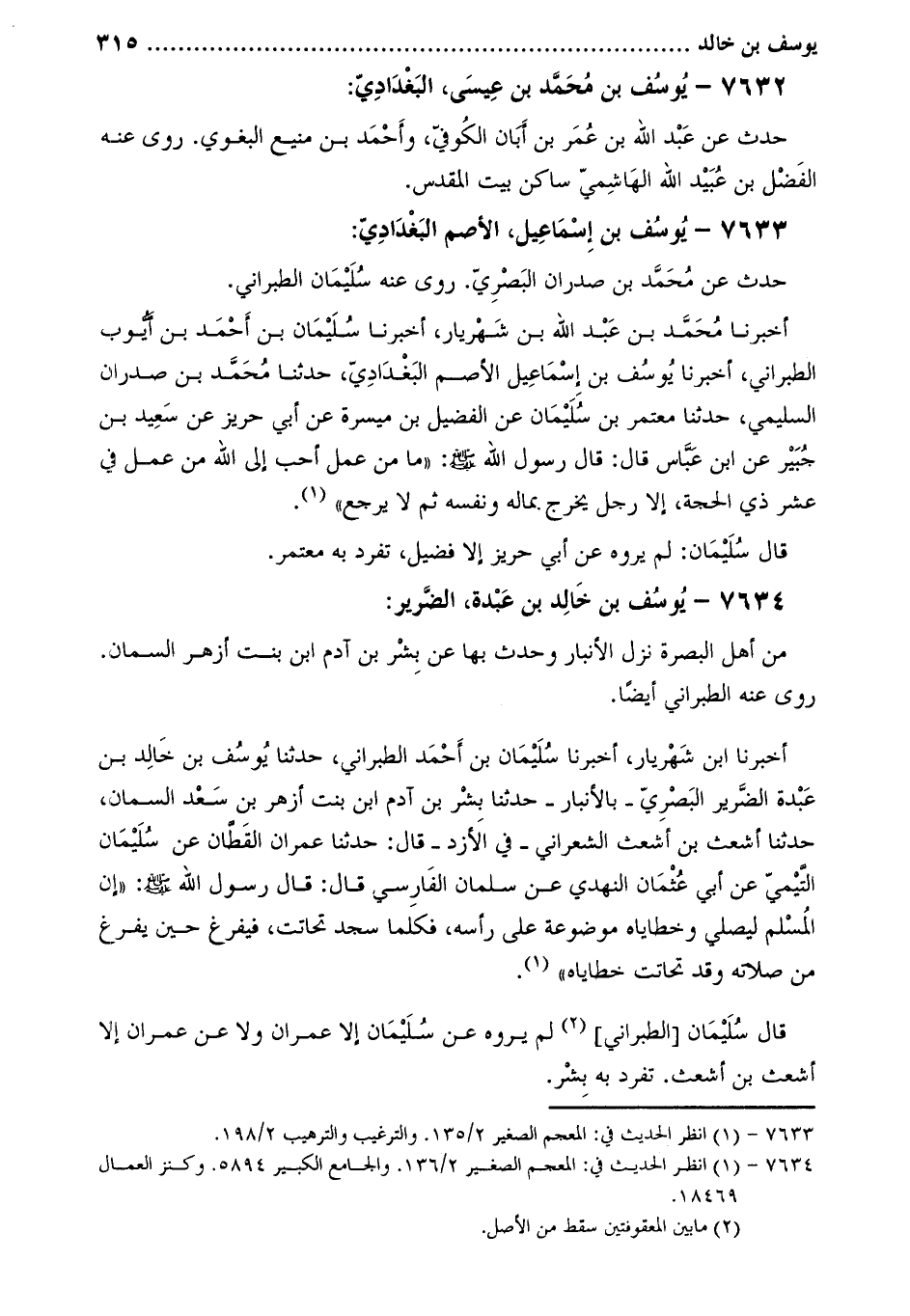 قال سليمان [الطّبراني] [3] لَمْ يَرْوِهِ عَنْ سُلَيْمَانَ إِلا عِمْرَانُ وَلا عَنْ عِمْرَانَ إِلا أَشْعَثُ بْنُ أَشْعَثَ. تَفَرَّدَ به بشر.