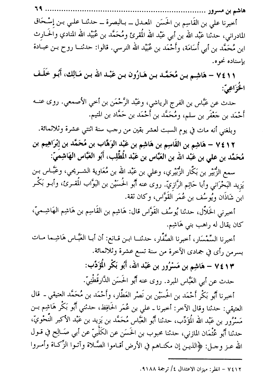 7412- هاشم بْن القاسم بْن هاشم بْن عَبْد الوهاب بْن مُحَمَّد بْن إِبْرَاهِيم بْن مُحَمَّدِ بْنِ عَلِيّ بْن عَبْد اللَّه بن العباس بْن عَبْد المطلب، أَبُو الْعَبَّاس الهاشمي [1] :