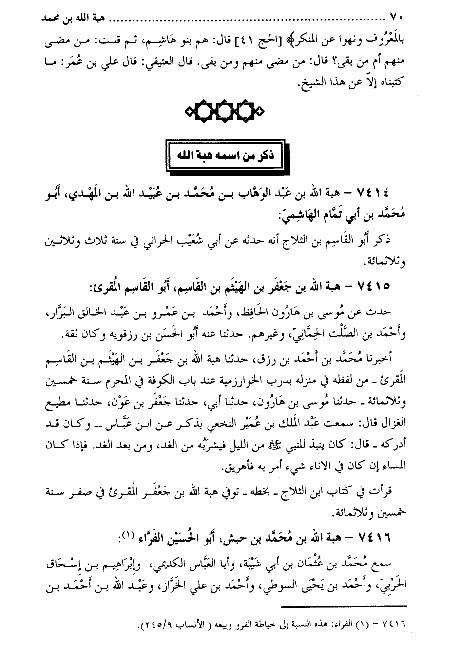 7416- هبة الله بن محمد بن حبش، أبو الحسين الفراء [1] :
