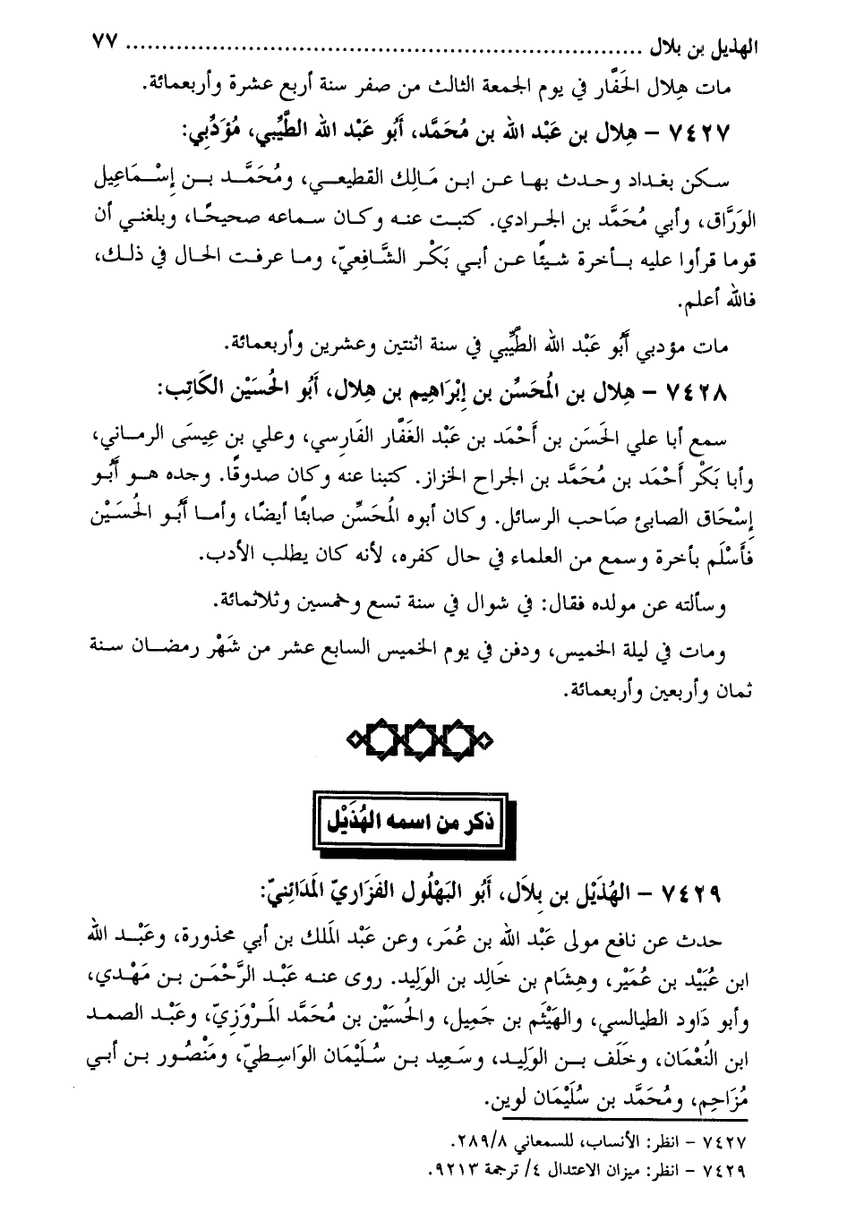 7428- هلال بْن المحسن بْن إِبْرَاهِيمَ بْن هلال، أبو الحسين الكاتب: