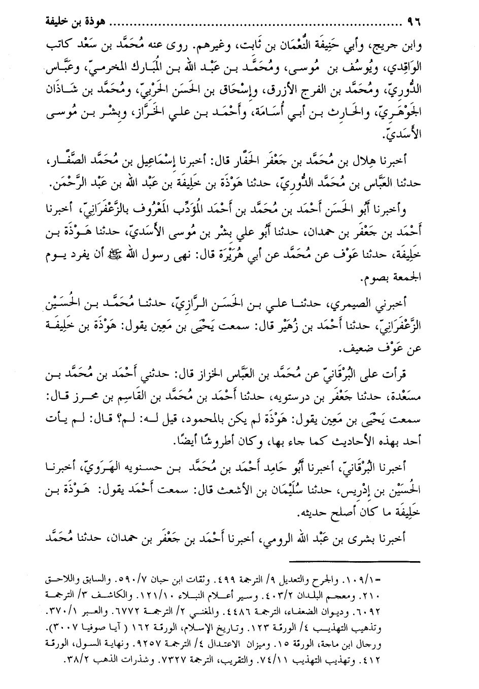 أَخْبَرَنَا هِلالُ بْنُ مُحَمَّدِ بْنِ جَعْفَرٍ الْحَفَّارُ قال: أخبرنا إسماعيل بن محمّد الصّفّار، حدثنا العبّاس بن محمّد الدّوريّ، حَدَّثَنَا هَوْذَةُ بْنُ خَلِيفَةَ بْنِ عَبْدِ اللَّهِ بْنِ عَبْدِ الرَّحْمَنِ.