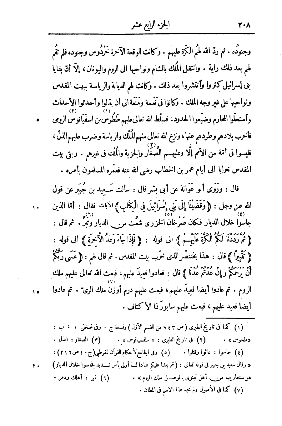 قال: وروى أبو عوانة عن أبى بشر قال: سألت سعيد بن جبير عن قول الله عز وجل: وَقَضَيْنا إِلى بَنِي إِسْرائِيلَ فِي الْكِتابِ