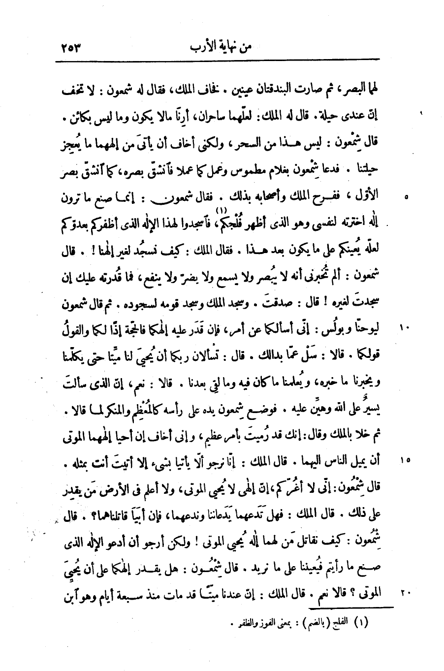 قال شمعون: ليس هذا من السحر، ولكنى أخاف أن يأتى من إلههما ما يعجز حيلتنا. فدعا شمعون بغلام مطموس وعمل كما عملا فانشقّ بصره، كما انشقّ بصر الأوّل، ففرح الملك وأصحابه بذلك. فقال شمعون: إنما صنع ما ترون إله اخترته لنفسى وهو الذى أظهر فلجكم «1» ، فاسجدوا لهذا الإله الذى أظفركم بعدوّكم لعلّه يعينكم على ما يكون بعد هذا. فقال الملك: كيف نسجد لغير إلهنا!. قال شمعون: ألم تخبرنى أنه لا يبصر ولا يسمع ولا يضرّ ولا ينفع، فما قدرته عليك إن سجدت لغيره! قال: صدقت. وسجد الملك وسجد قومه لسجوده. ثم قال شمعون ليوحنّا وبولس: إنّى أسألكما عن أمر، فإن قدر عليه إلهكما فالحجّة إذا لكما والقول قولكما. قالا: سل عمّا بدالك. قال: تسألان ربكما أن يحيى لنا ميّتا حتى يكلّمنا ويخبرنا ما خبره، ويعلمنا ما كان فيه وما لقى بعدنا. قالا: نعم، إنّ الذى سألت يسير على الله وهيّن عليه. فوضع شمعون يده على رأسه كالمعظم والمنكر لما قالا.