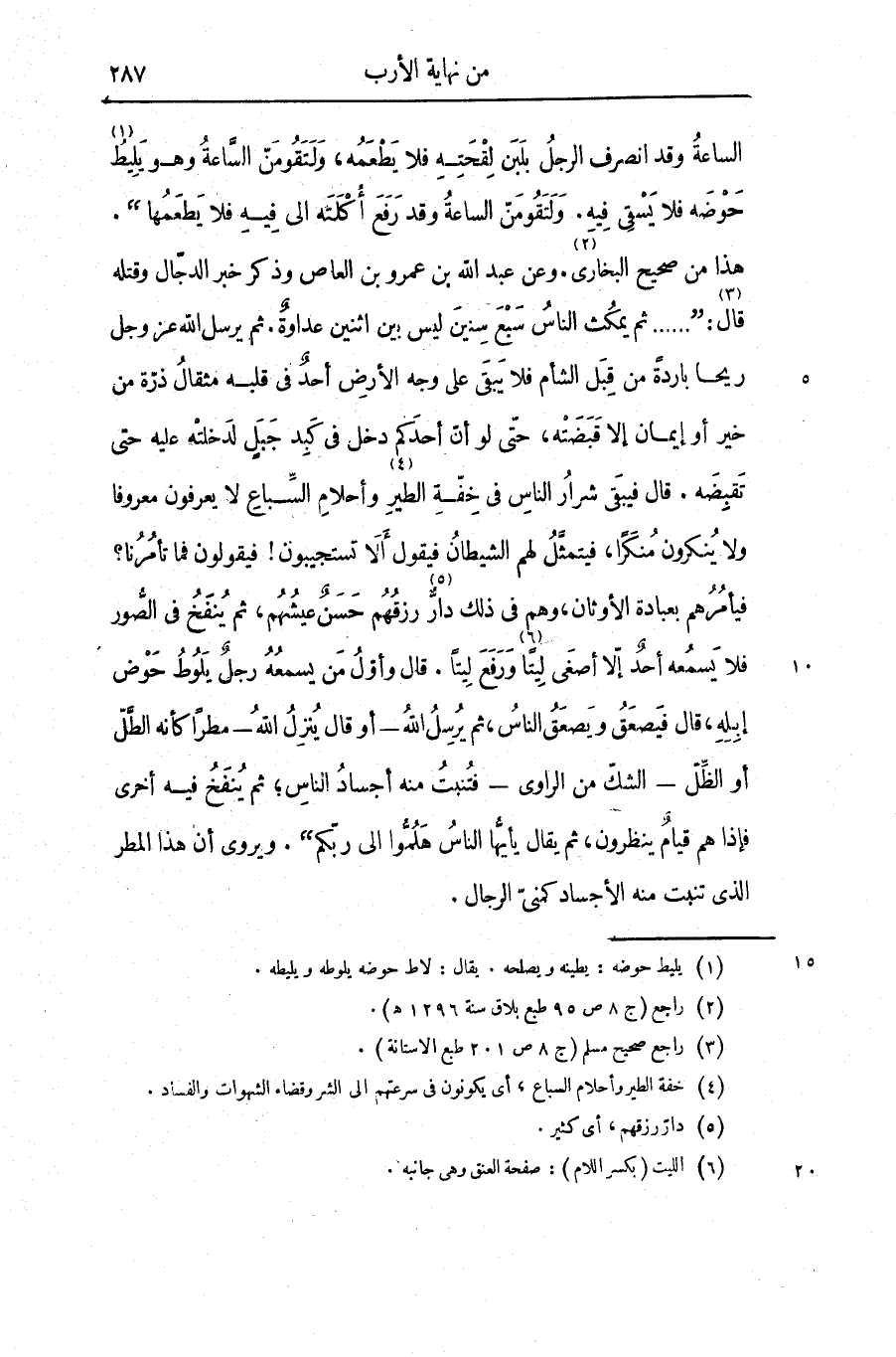 الساعة وقد انصرف الرجل بلبن لقحته فلا يطعمه، ولتقومنّ السّاعة وهو يليط «1» حوضه فلا يسقى فيه. ولتقومنّ الساعة وقد رفع أكلته الى فيه فلا يطعمها» .