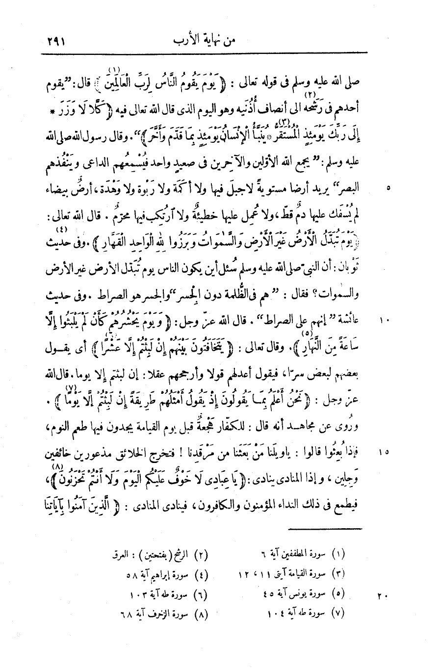 قال: «يقوم أحدهم فى رشحه «2» الى أنصاف أذنيه وهو اليوم الذى قال الله تعالى فيه كَلَّا لا وَزَرَ* إِلى رَبِّكَ يَوْمَئِذٍ الْمُسْتَقَرُّ «3» * يُنَبَّؤُا الْإِنْسانُ يَوْمَئِذٍ بِما قَدَّمَ وَأَخَّرَ