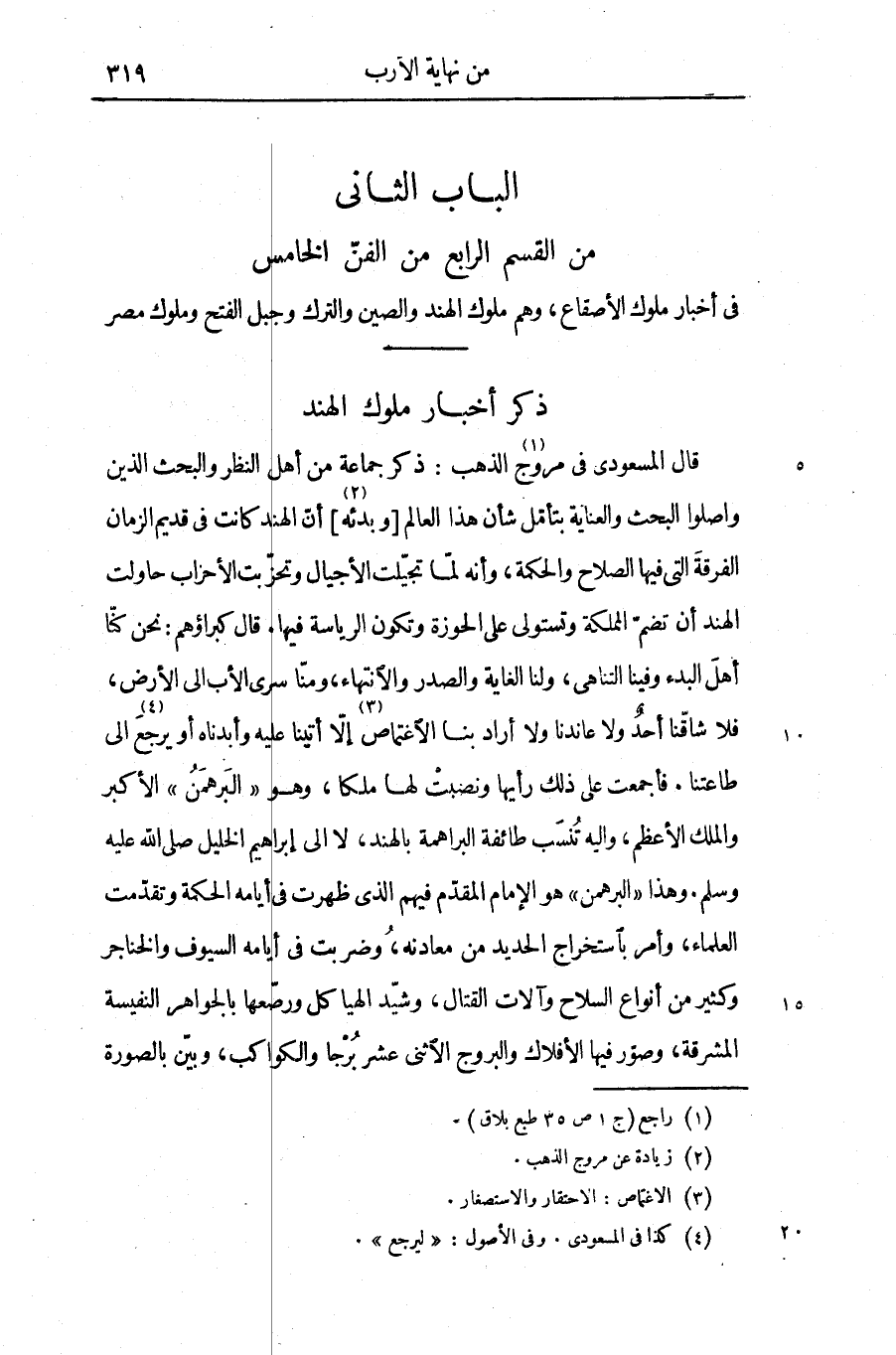 الباب الثانى من القسم الرابع من الفنّ الخامس فى أخبار ملوك الأصقاع، وهم ملوك الهند والصين والترك وجبل الفتح وملوك مصر