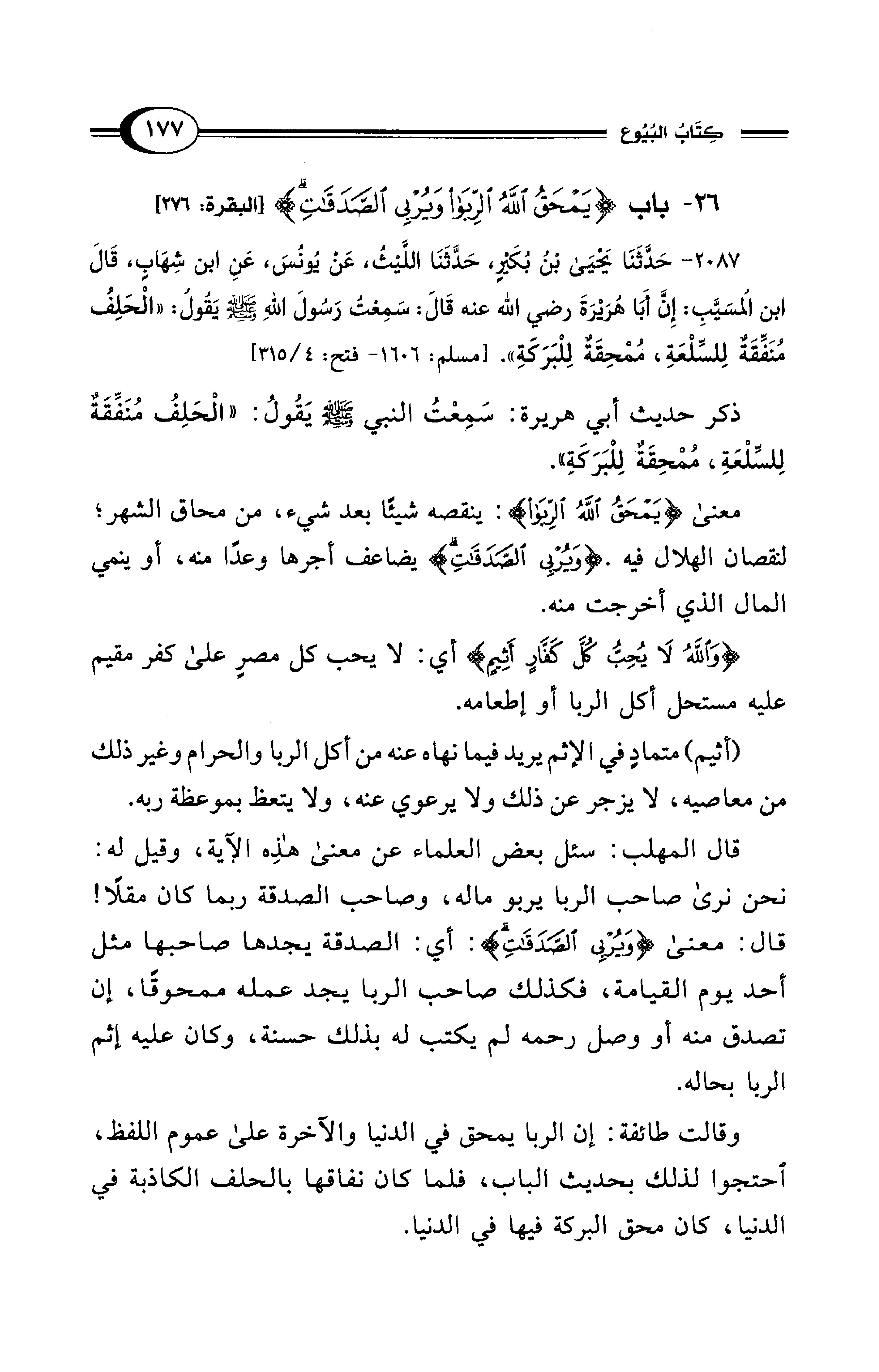 26 - باب {يَمْحَقُ اللهُ الرِّبَا وَيُرْبِى الصَّدَقَاتِ} [البقرة: 276]
