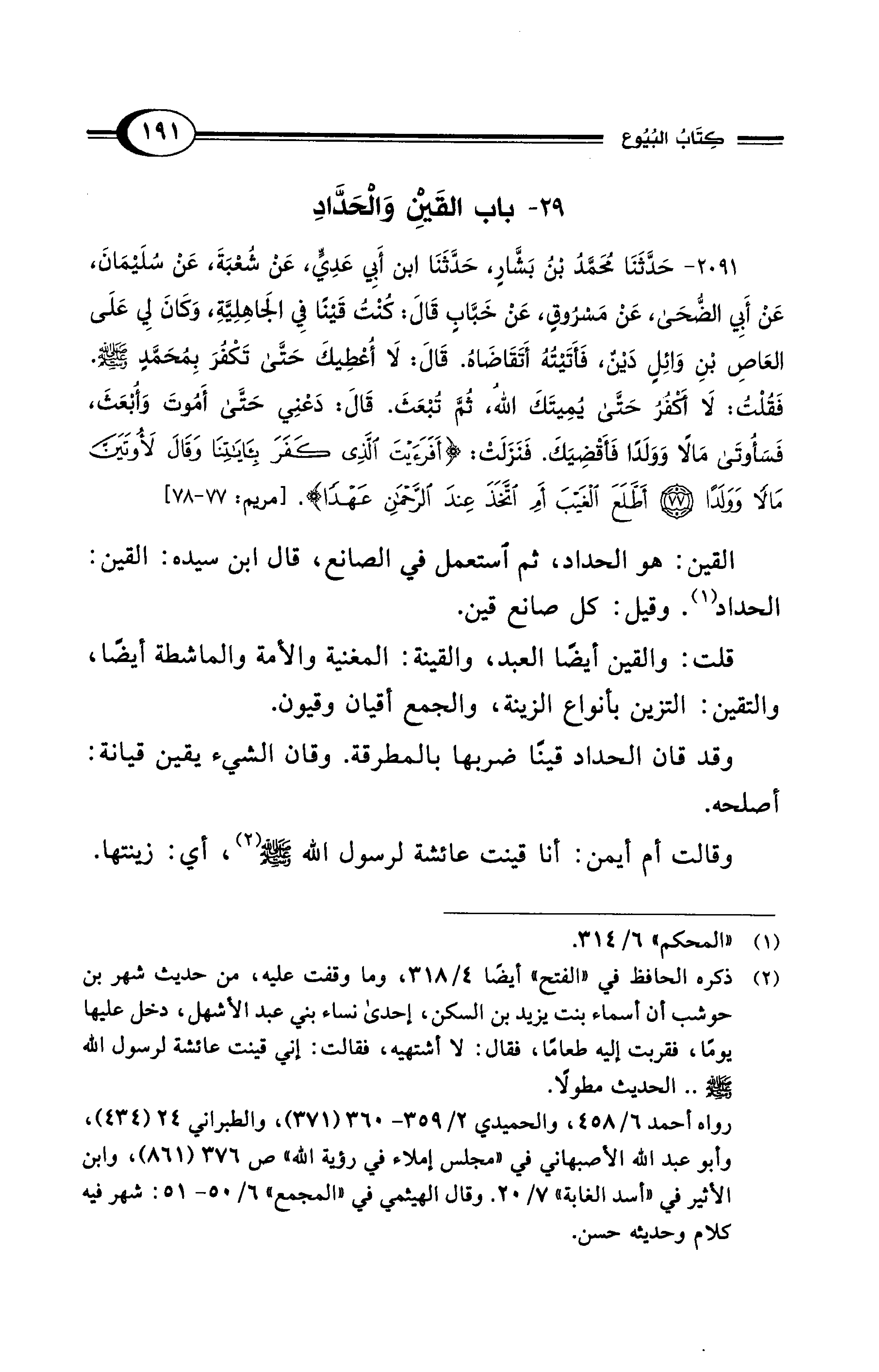 29 - باب ذِكْرِ القَيْنِ وَالحَدَّادِ