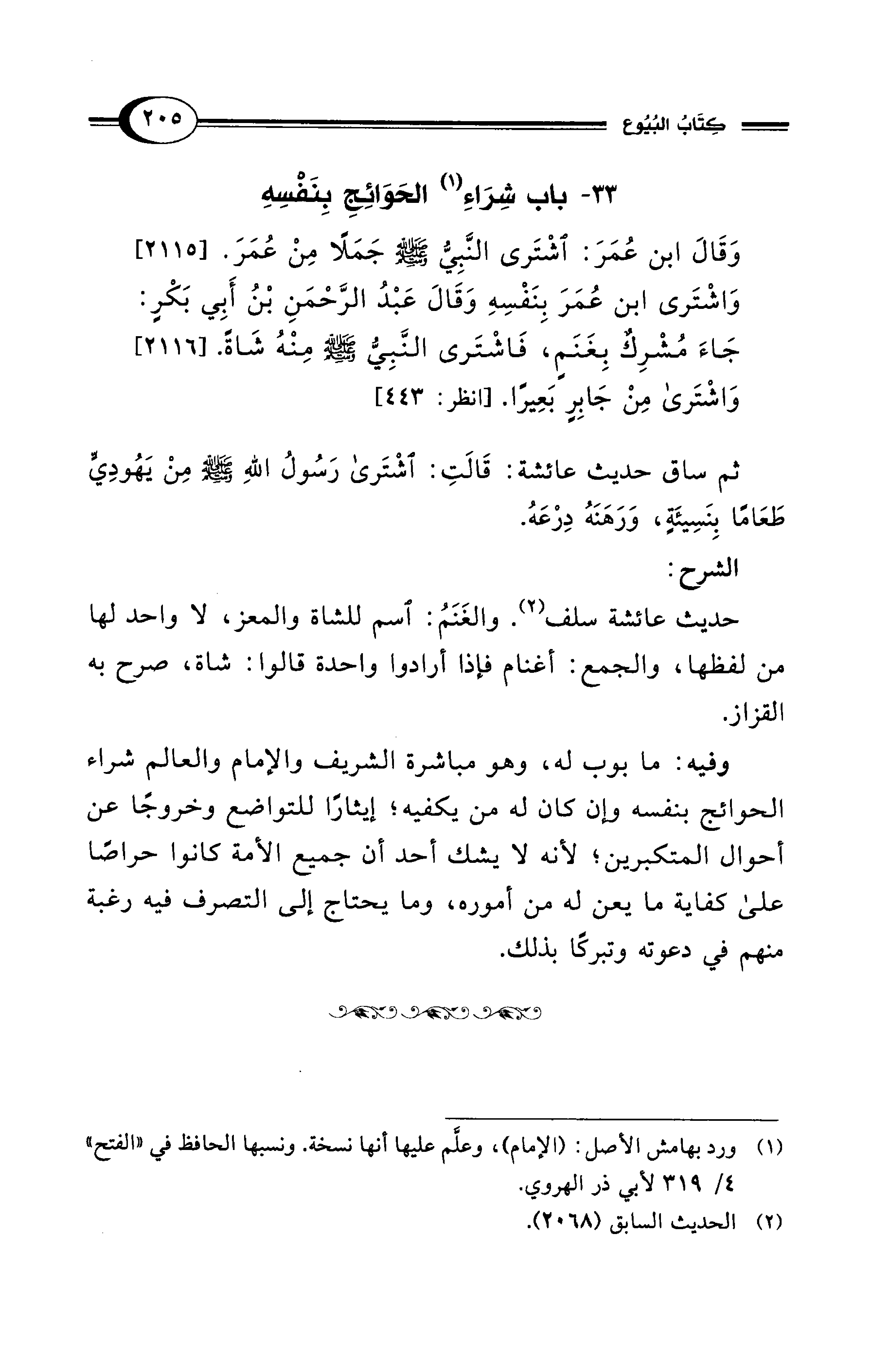 33 - باب شِرَاءِ (¬1) الحَوَائِجِ بِنَفْسِهِ