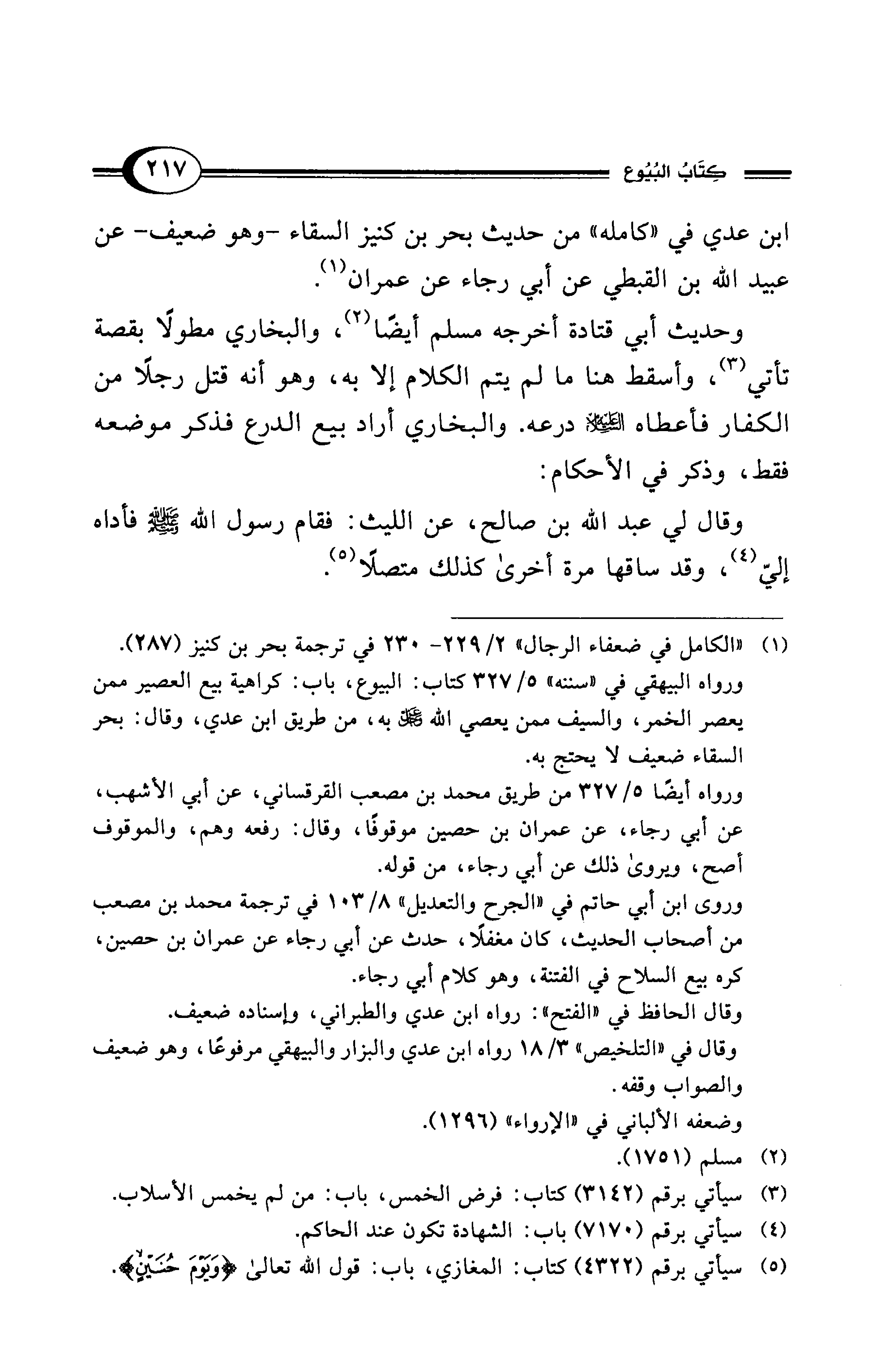 (¬1) "الكامل في ضعفاء الرجال" 2/ 229 - 230 في ترجمة بحر بن كنيز (287).