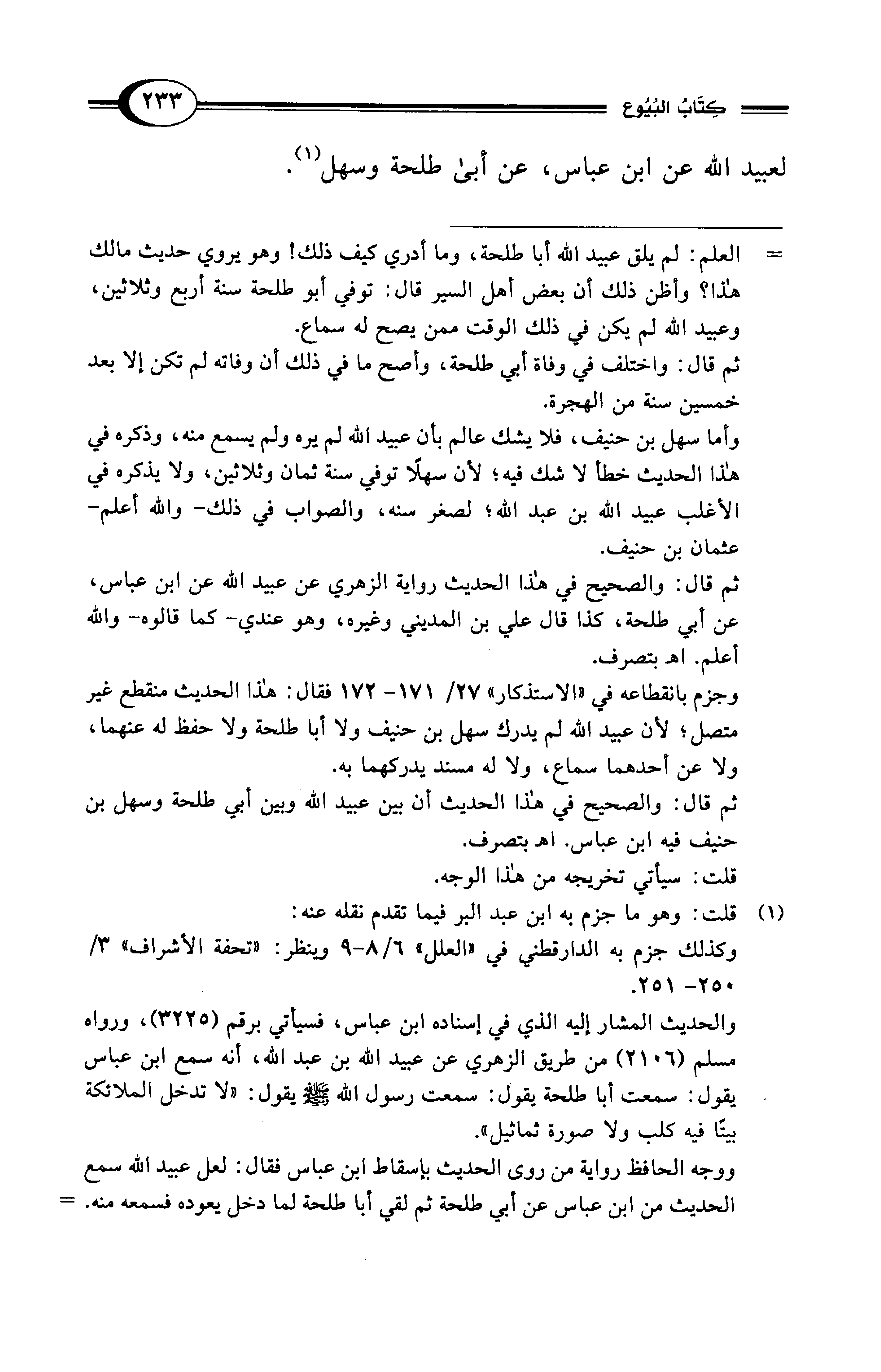 ثم قال: والصحيح في هذا الحديث أن بين عبيد الله وبين أبي طلحة وسهل بن حنيف فيه ابن عباس. اهـ بتصرف.
