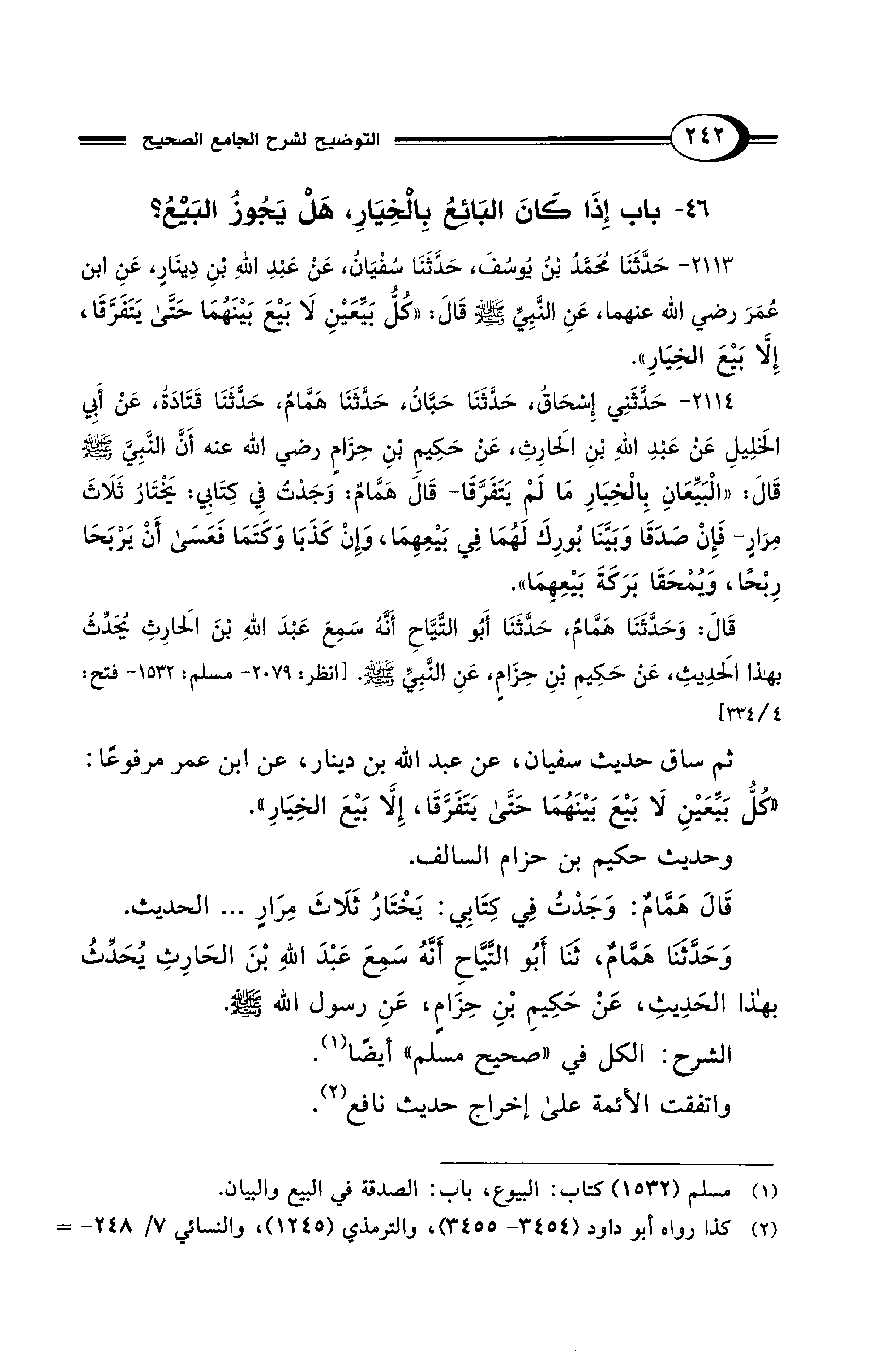 (¬1) مسلم (1532) كتاب: البيوع، باب: الصدقة في البيع والبيان.
