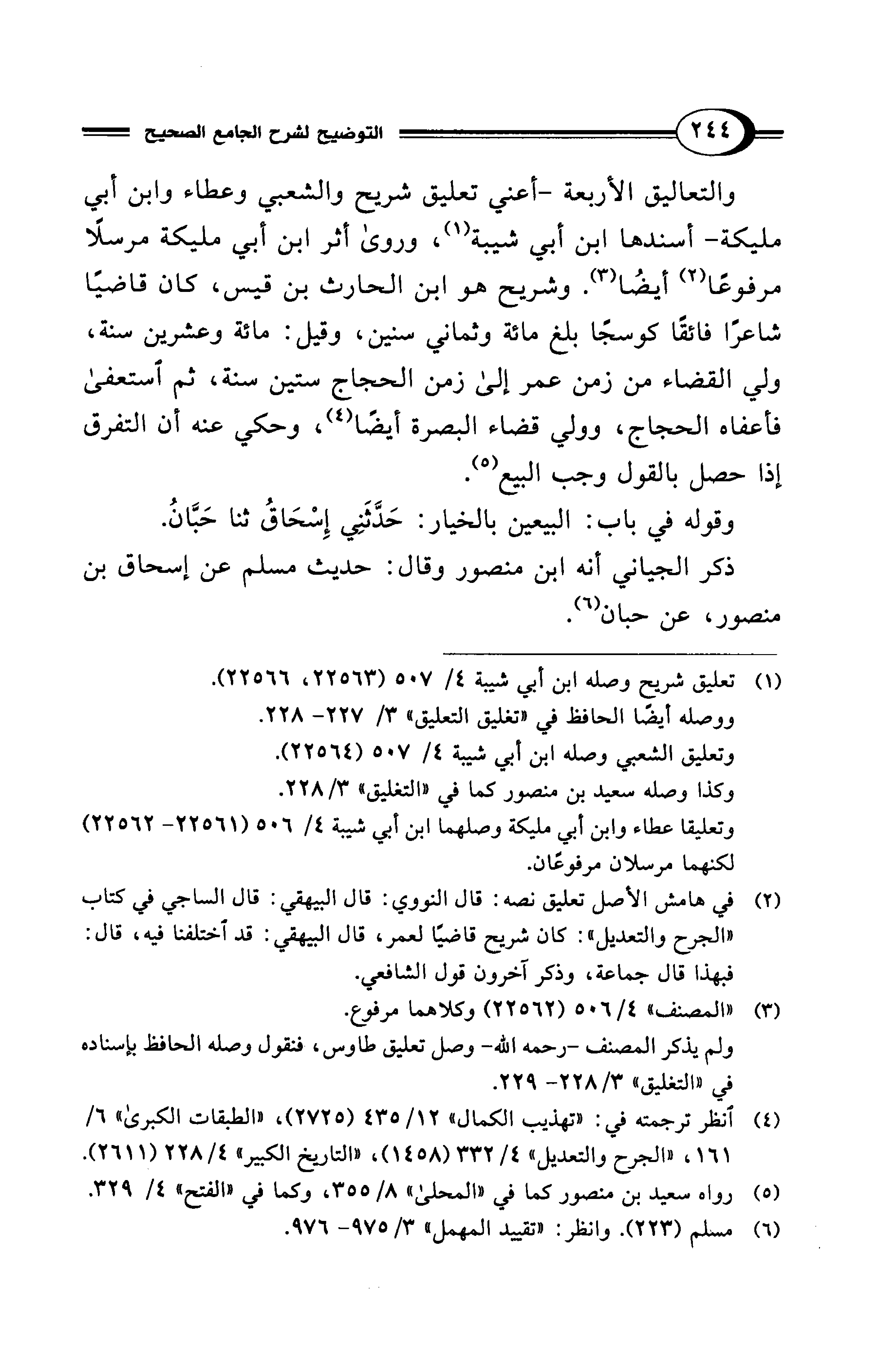(¬1) تعليق شريح وصله ابن أبي شيبة 4/ 507 (22563، 22566).