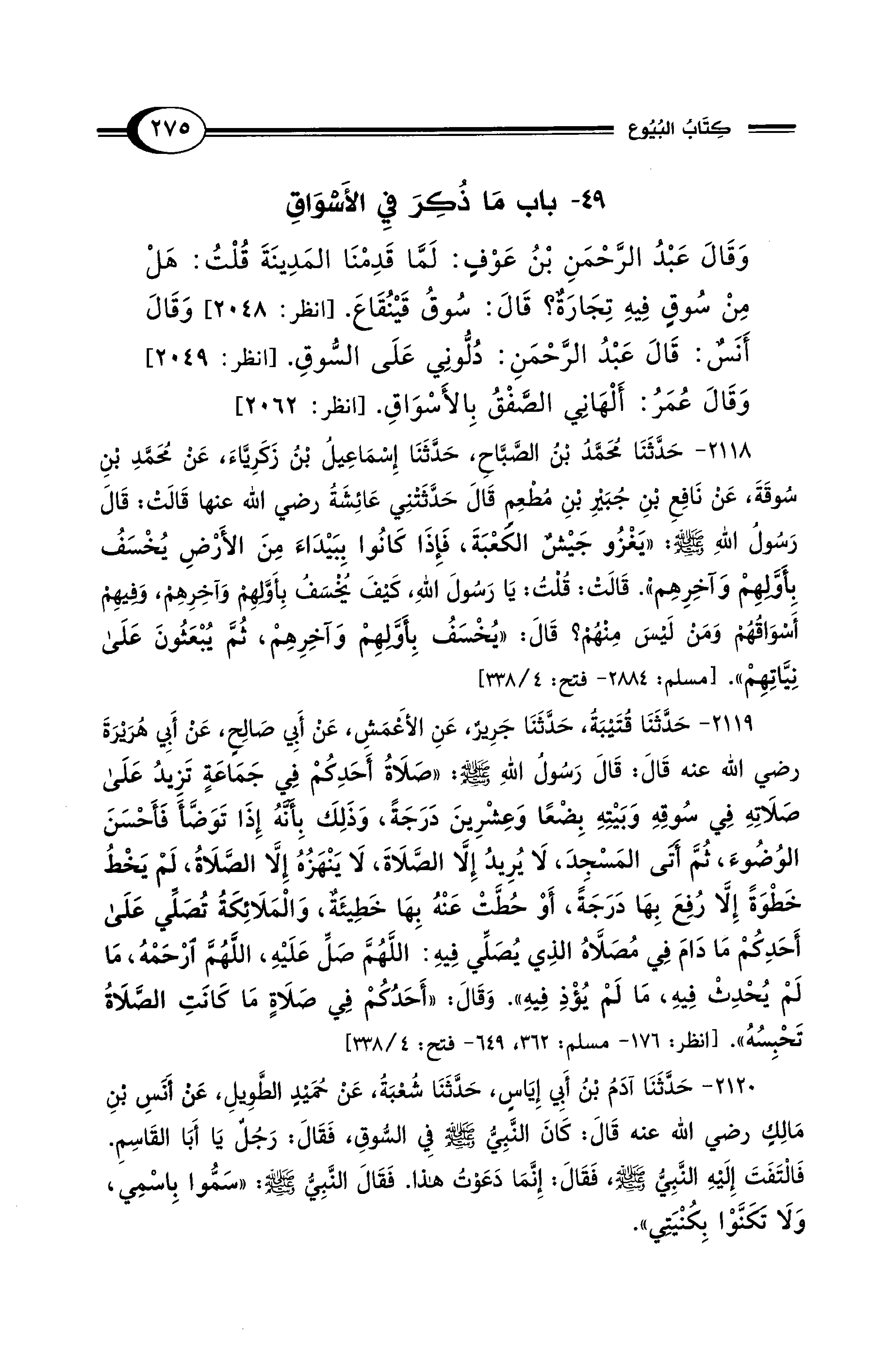 49 - باب مَا ذُكِرَ فِي الأَسْوَاقِ
