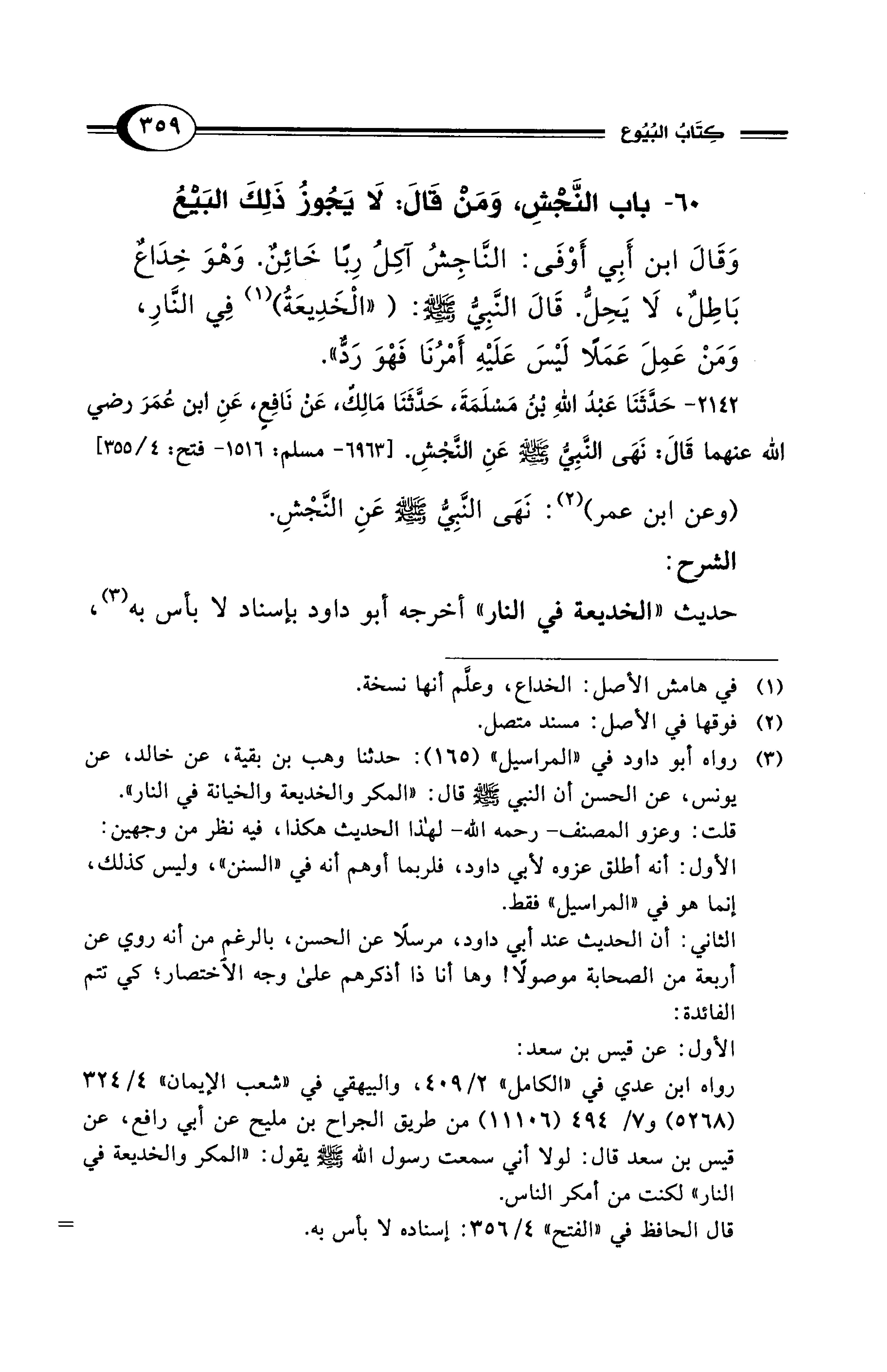 حديث "الخديعة في النار" أخرجه أبو داود بإسناد لا بأس به (¬3)،
