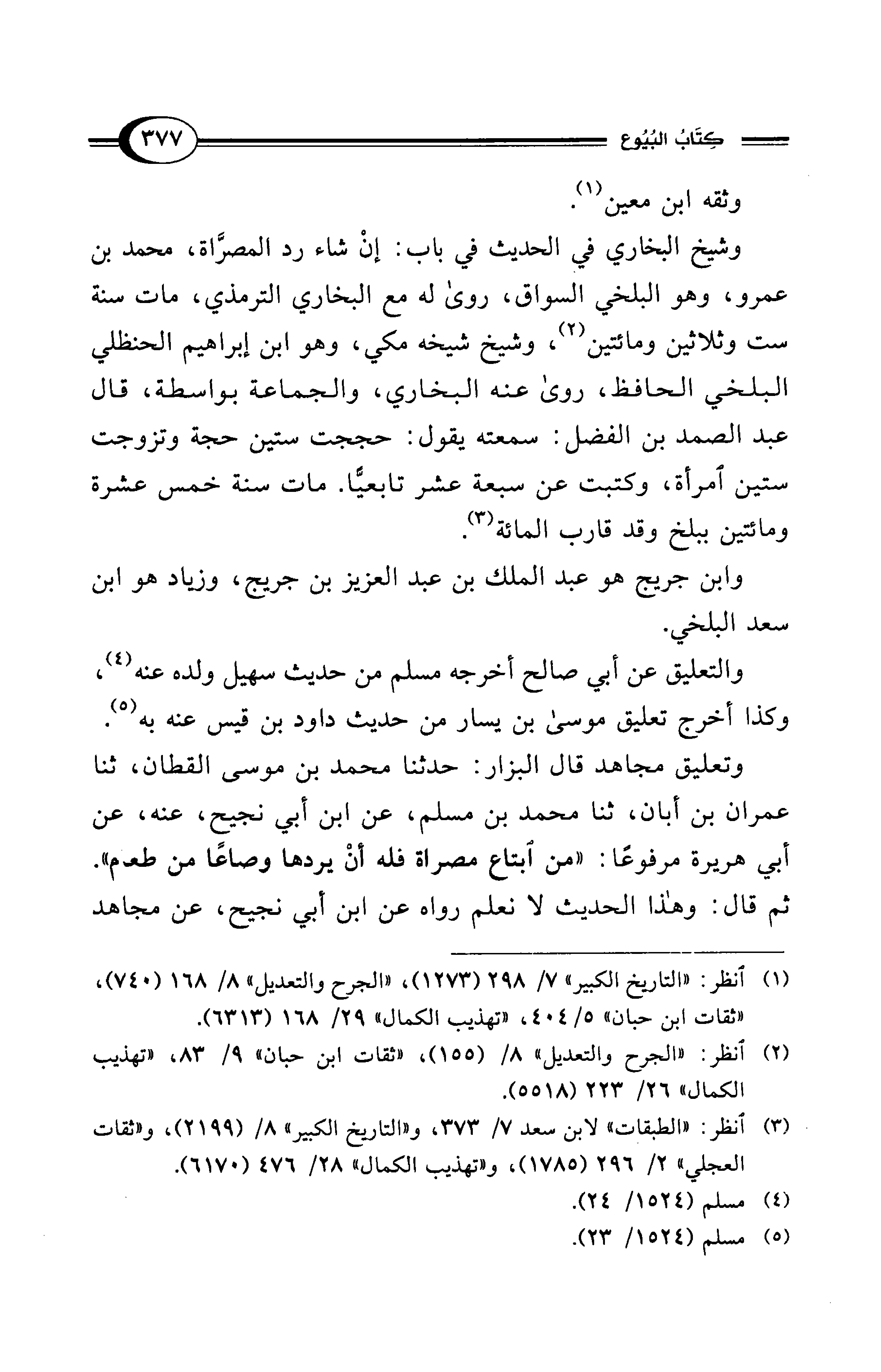 (¬1) انظر: "التاريخ الكبير" 7/ 298 (1273)، "الجرح والتعديل" 8/ 168 (740)، "ثقات ابن حبان" 5/ 404، "تهذيب الكمال" 29/ 168 (6313).