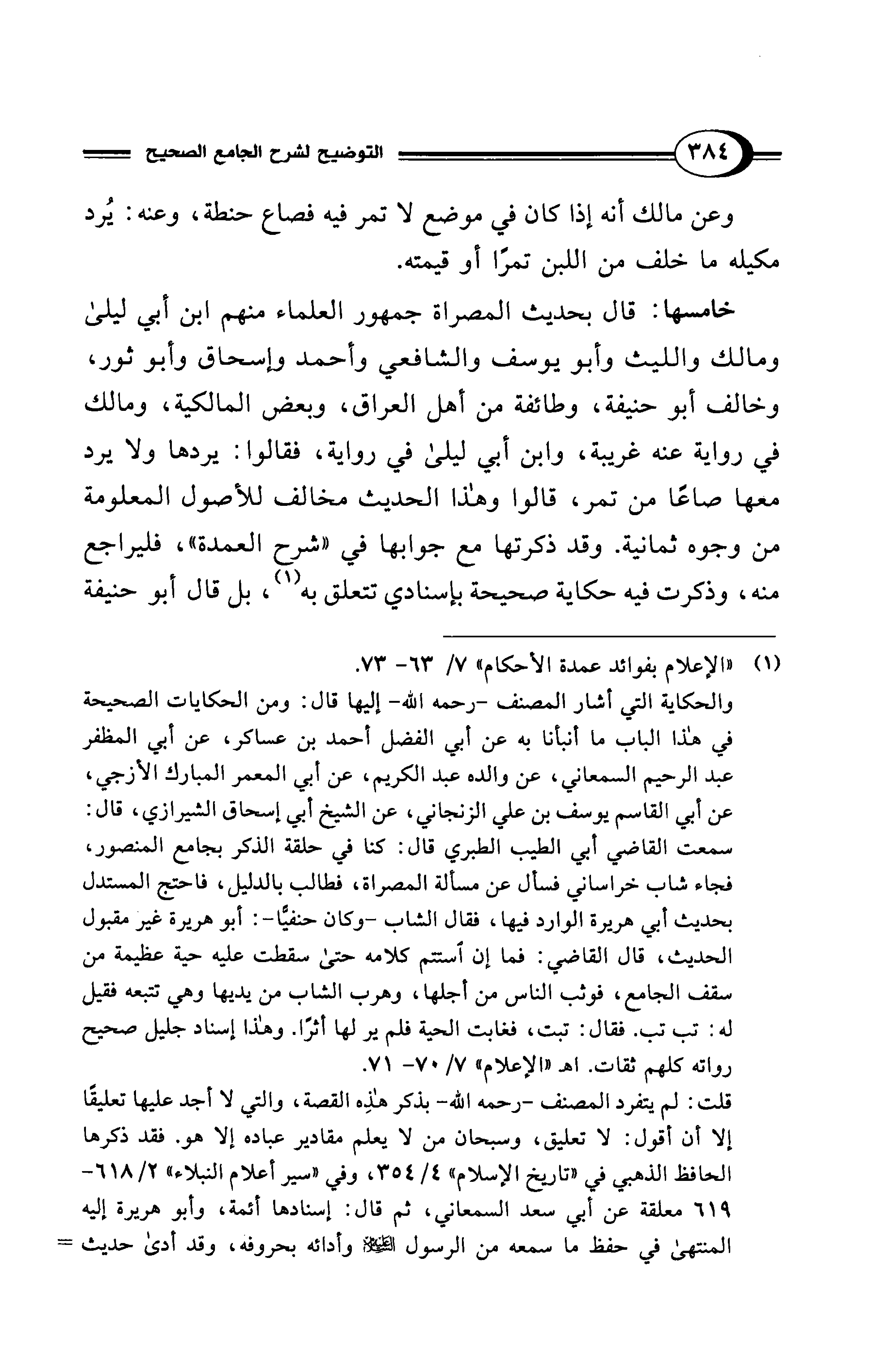 (¬1) "الإعلام بفوائد عمدة الأحكام" 7/ 63 - 73.