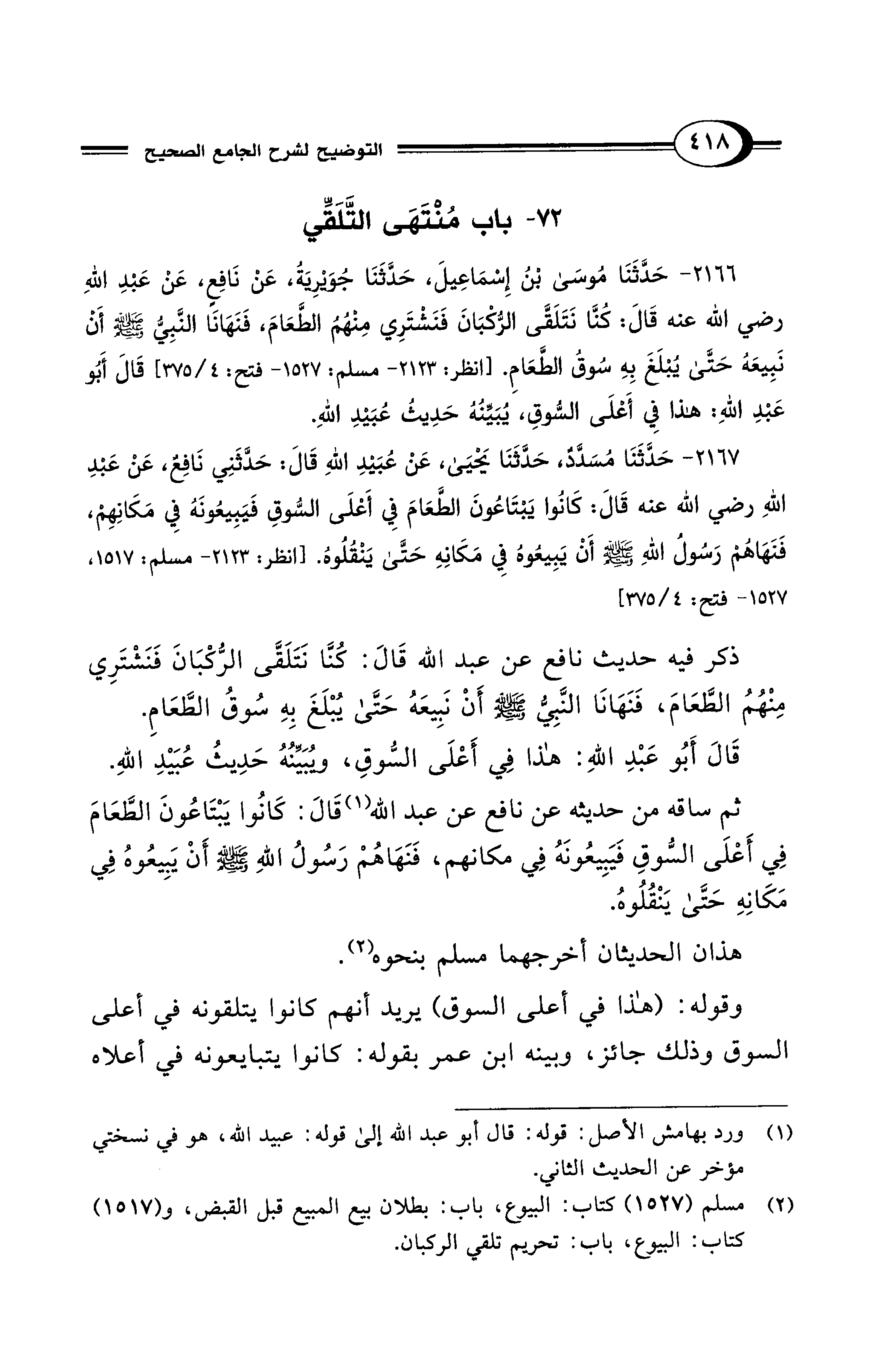 (¬2) مسلم (1527) كتاب: البيوع، باب: بطلان بيع المبيع قبل القبض، و (1517) كتاب: البيوع، باب: تحريم تلقي الركبان.