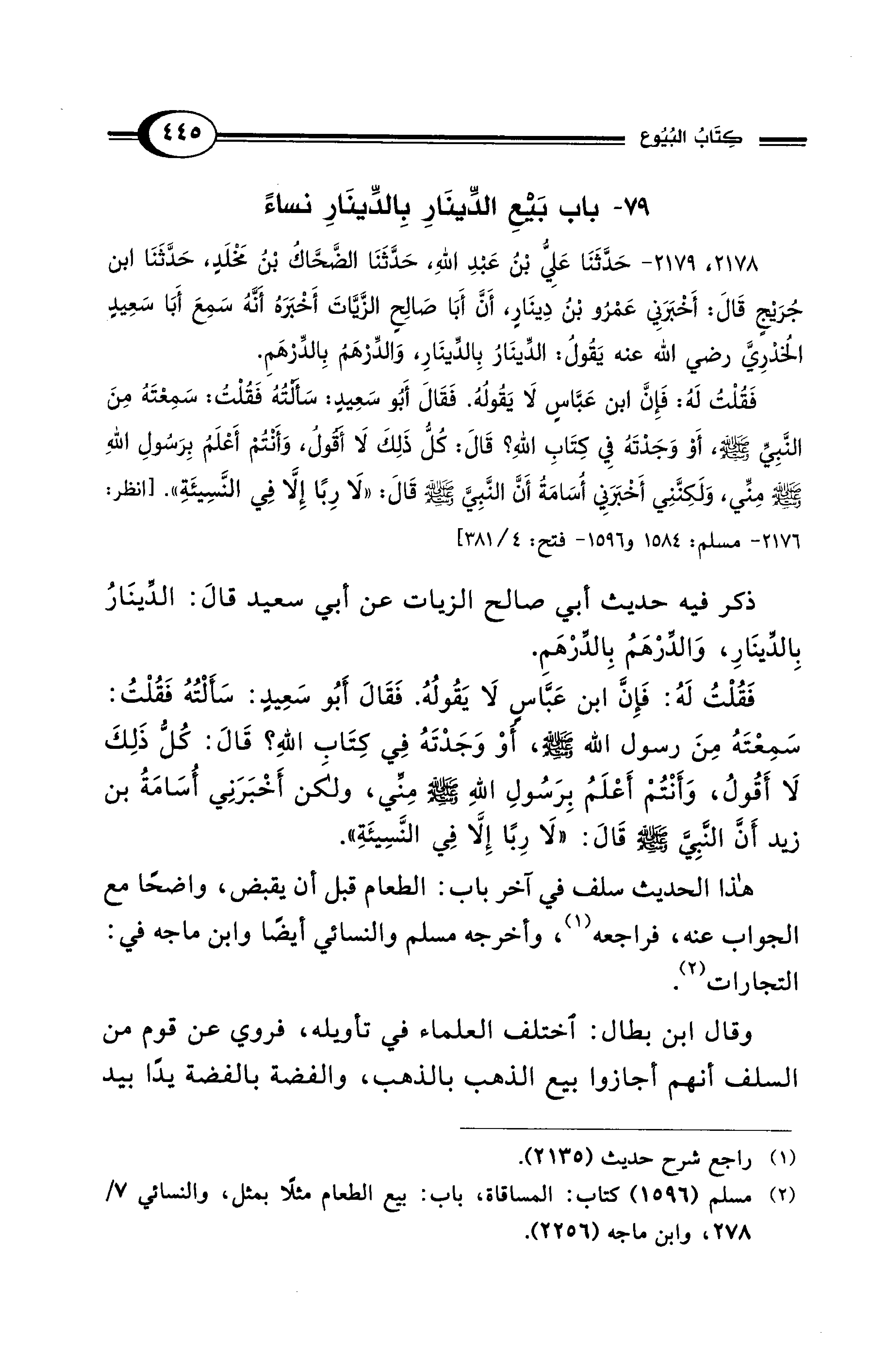 79 - باب بَيْعِ الدِّينَارِ بِالدِّينَارِ نَسْاءً