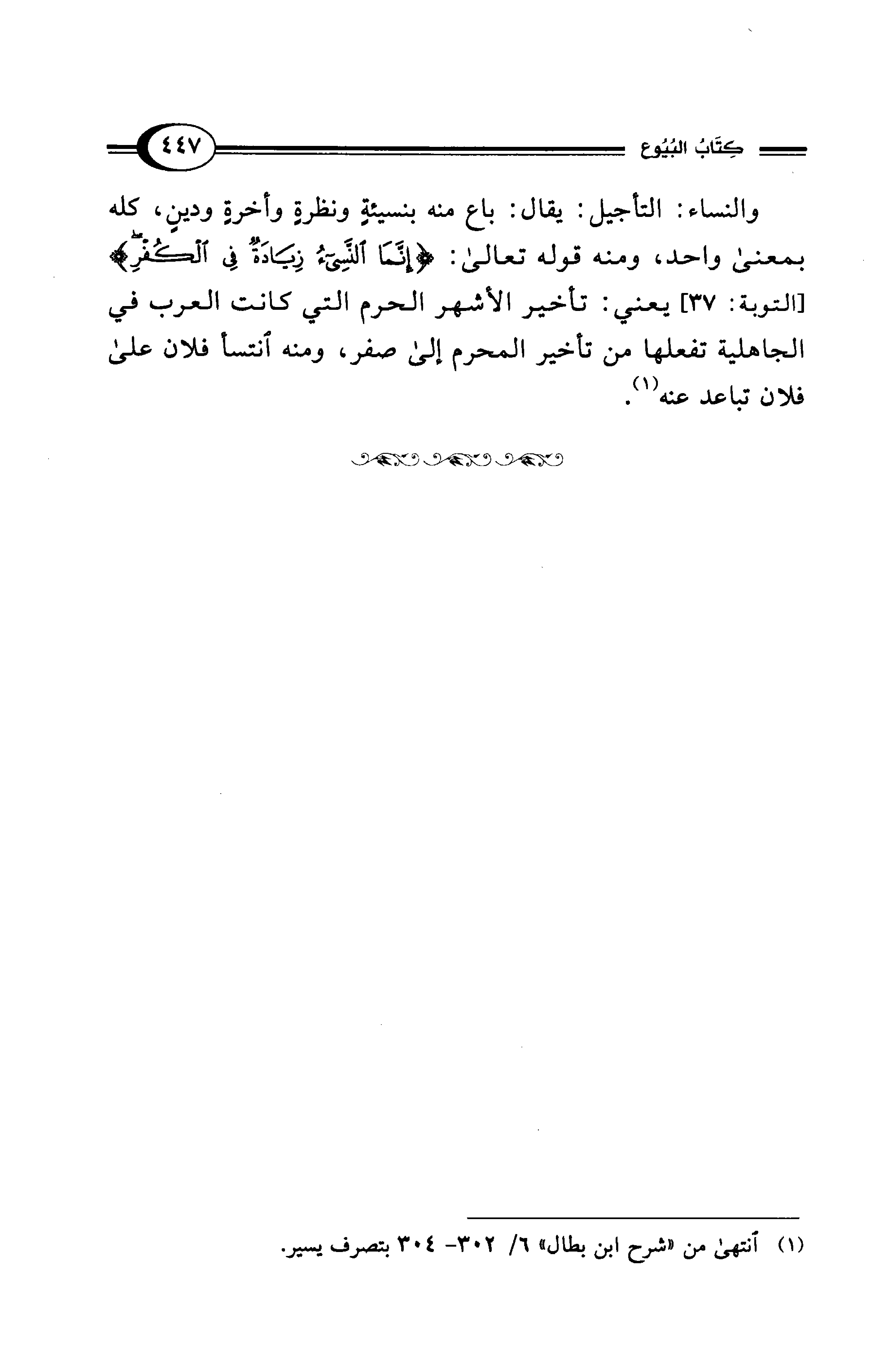 والنساء: التأجيل: يقال: باع منه بنسيئةِ ونظرةٍ وأخرةٍ ودينٍ، كله بمعنى واحد، ومنه قوله تعالى: {إِنَّمَا النَّسِيءُ زِيَادَةٌ فِي الْكُفْرِ} [التوبة: 37]} يعني: تأخير الأشهر الحرم التي كانت العرب في الجاهلية تفعلها من تأخير المحرم إلى صفر، ومنه انتسأ فلان على فلان تباعد عنه (¬1).