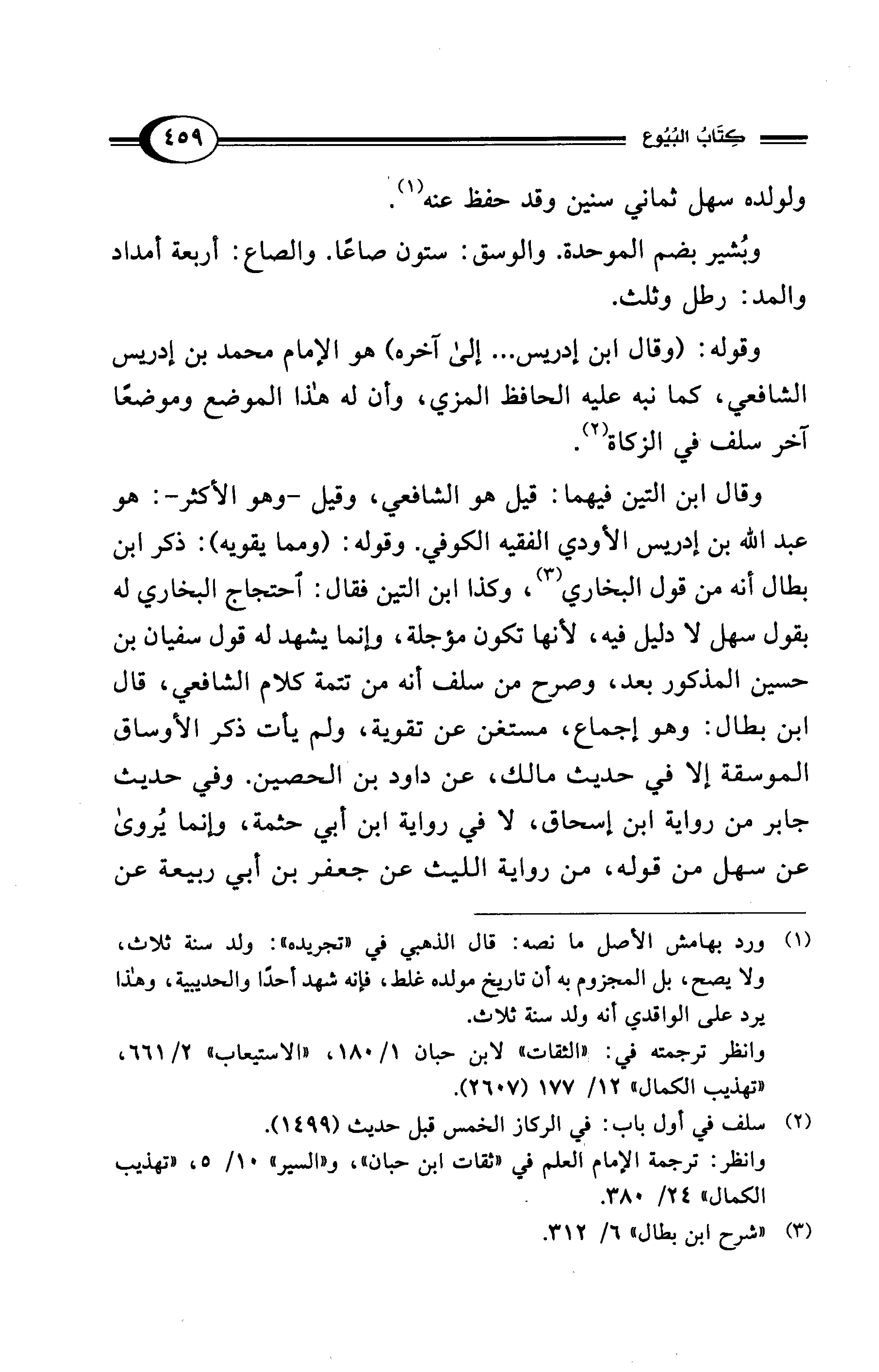 وقال ابن التين فيهما: قيل هو الشافعي، وقيل -وهو الأكثر-: هو عبد الله بن إدريس الأودي الفقيه الكوفي. وقوله: (ومما يقويه): ذكر ابن بطال أنه من قول البخاري (¬3)، وكذا ابن التين فقال: احتجاج البخاري له بقول سهل لا دليل فيه، لأنها تكون مؤجلة، وإنما يشهد له قول سفيان بن حسين المذكور بعد، وصرح من سلف أنه من تتمة كلام الشافعي، قال ابن بطال: وهو إجماع، مستغن عن تقوية، ولم يأت ذكر الأوساق الموسقة إلا في حديث مالك، عن داود بن الحصين. وفي حديث جابر من رواية ابن إسحاق، لا في رواية ابن أبي حثمة، وإنما يُروى عن سهل من قوله، من رواية الليث عن جعفر بن أبي ربيعة عن