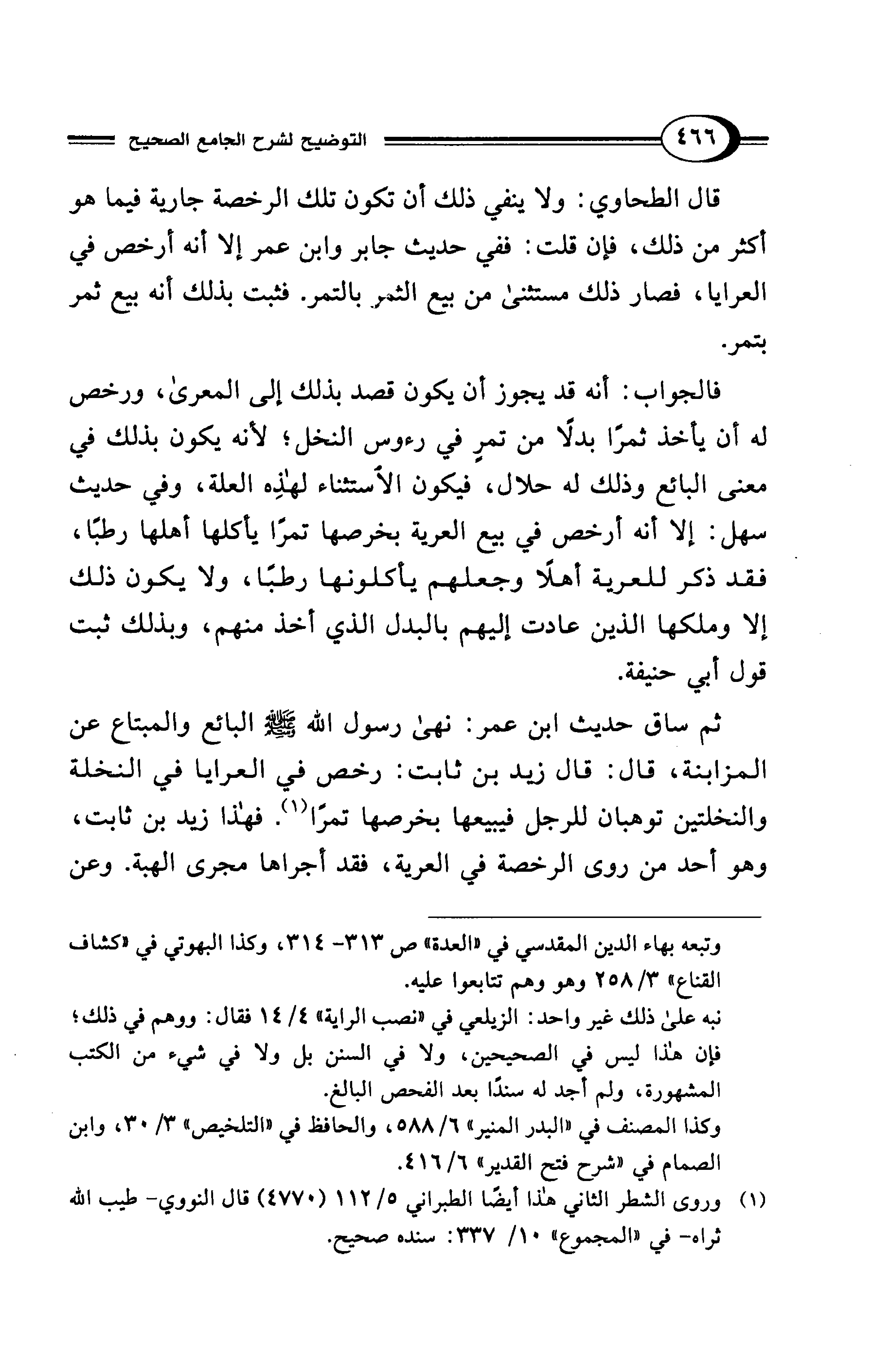 قال الطحاوي: ولا ينفي ذلك أن تكون تلك الرخصة جارية فيما هو أكثر من ذلك، فإن قلت: ففي حديث جابر وابن عمر إلا أنه أرخص في العرايا، فصار ذلك مستثنى من بيع الثمر بالتمر. فثبت بذلك أنه بيع ثمر بتمر.