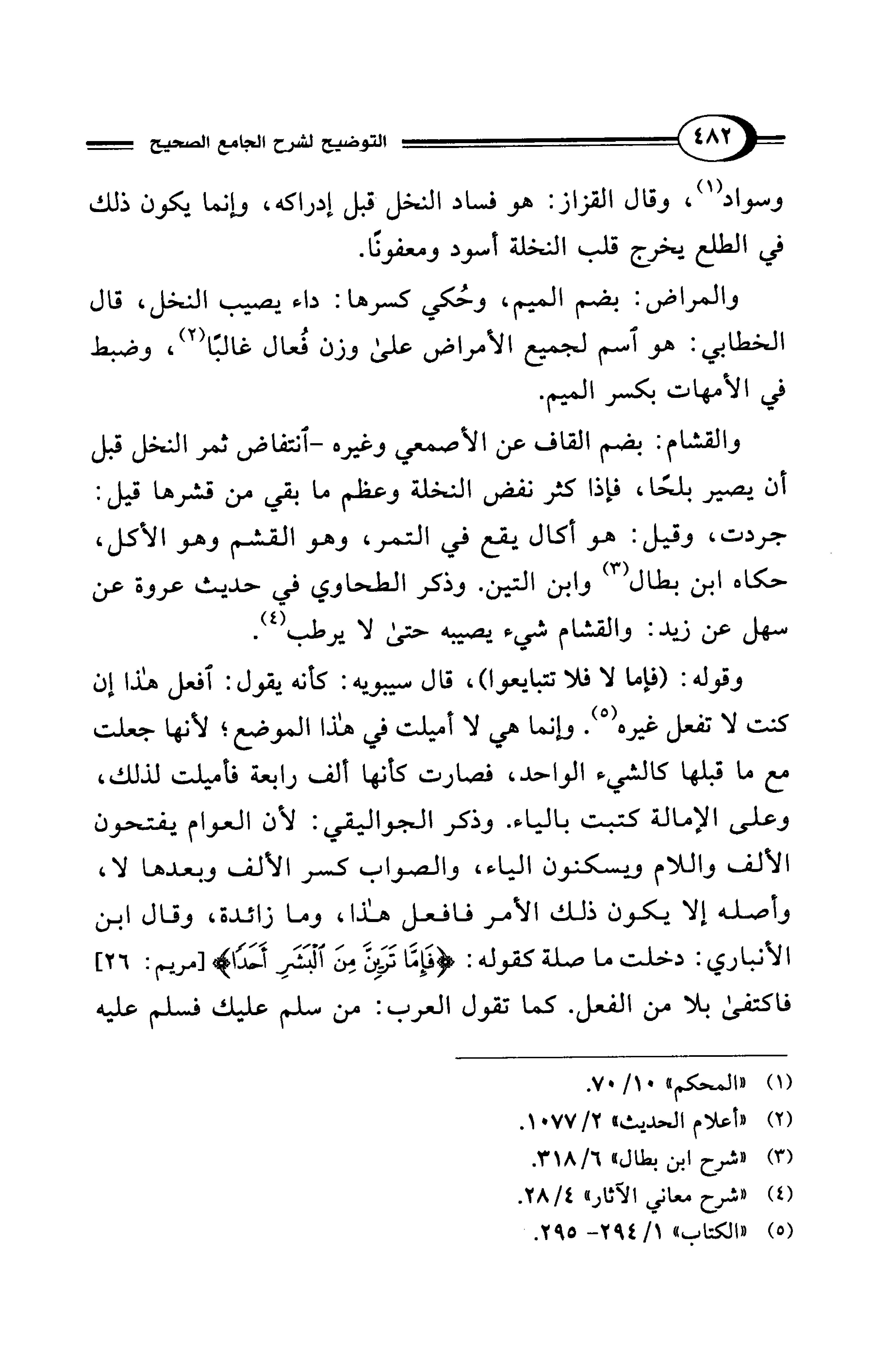 والقشام: بضم القاف عن الأصمعي وغيره -انتفاض ثمر النخل قبل أن يصير بلحًا، فإذا كثر نفض النخلة وعظم ما بقي من قشرها قيل: جردت، وقيل: هو أكال يقع في التمر، وهو القشم وهو الأكل، حكاه ابن بطال (¬3) وابن التين. وذكر الطحاوي في حديث عروة عن سهل عن زيد: والقشام شيء يصيبه حتى لا يرطب (¬4).