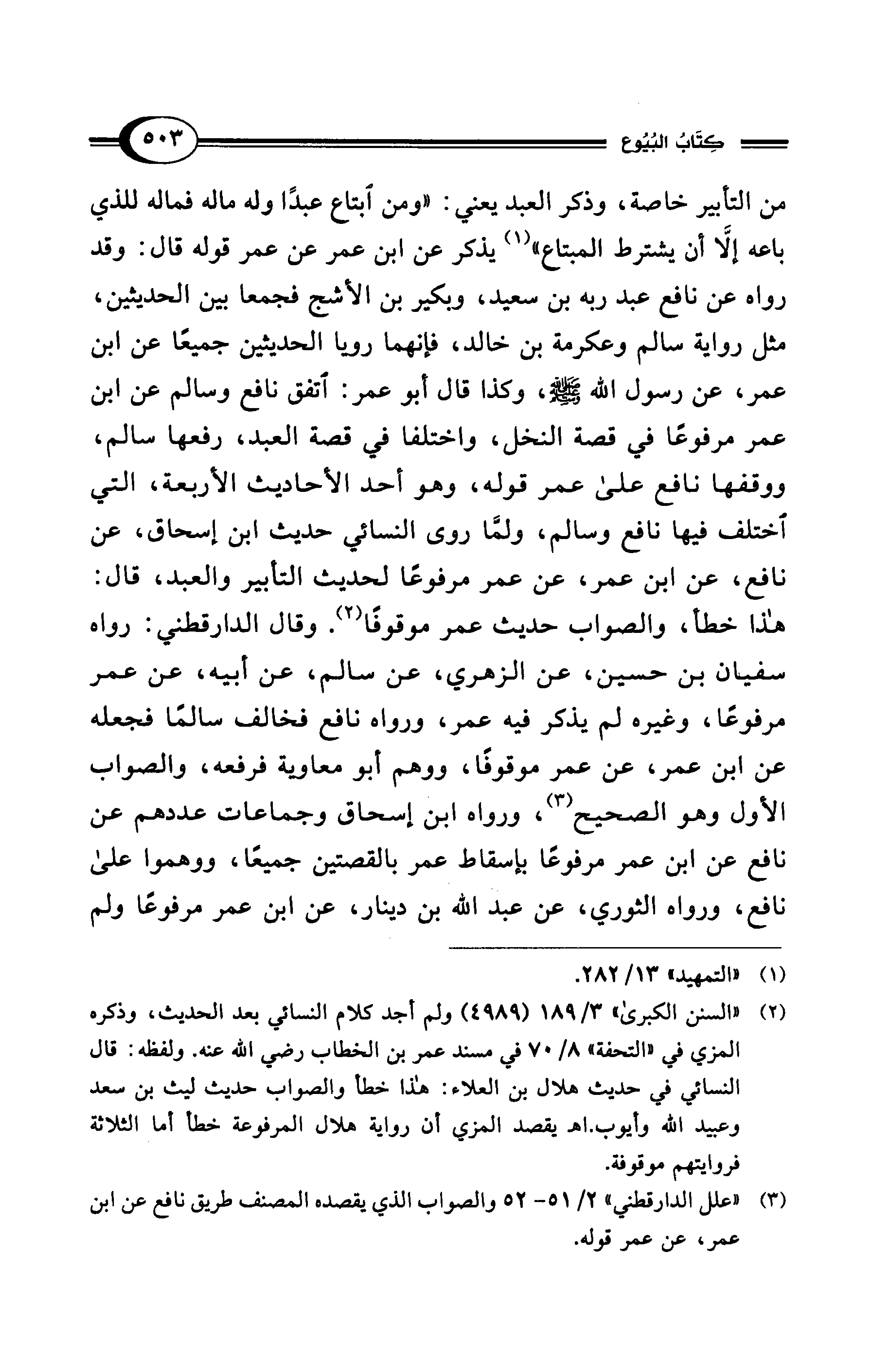 (¬3) "علل الدارقطني" 2/ 51 - 52 والصواب الذي يقصده المصنف طريق نافع عن ابن عمر، عن عمر قوله.