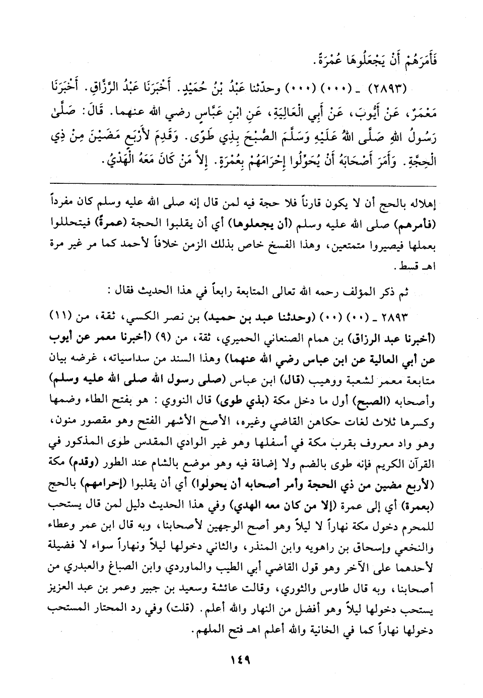 (٢٨٩٣) - (٠٠) (٠٠) وحدّثنا عَبدُ بْنُ حُمَيدٍ. أَخبَرَنَا عَبْدُ الرَّزَّاقِ. أخبَرَنَا مَعمَرٌ، عَنْ أيوب، عَنْ أَبِي العَالِيَةِ، عَنِ ابْنِ عَباسٍ رضي الله عنهما. قَال: صَلَّى رَسُولُ اللهِ صَلى اللهُ عَلَيهِ وَسَلمَ الصُّبحَ بِذِي طَوَى. وَقَدِمَ لأَربَعٍ مَضَينَ مِنْ ذِي الْحجَّةِ. وَأَمَرَ أصحَابَهُ أَنْ يُحَوِّلُوا إِحرَامَهُم بِعُمرَةٍ. إلا من كَانَ مَعَهُ الهديُ