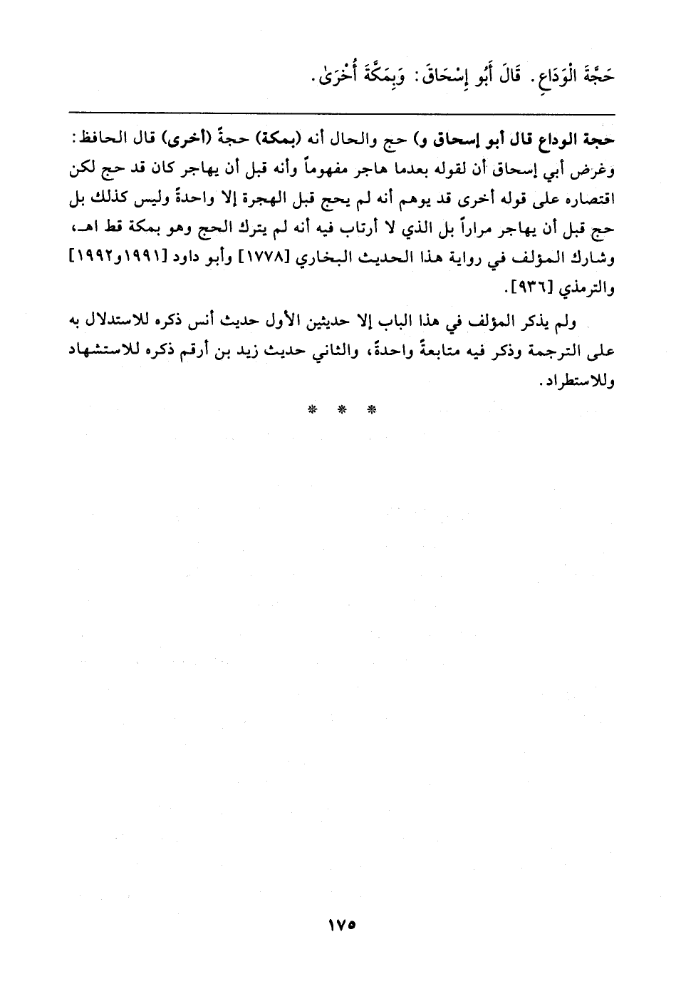 حجة الوداع قال أبو إسحاق و) حج والحال أنه (بمكة) حجة (أخرى) قال الحافظ: وغرض أبي إسحاق أن لقوله بعدما هاجر مفهومًا وأنه قبل أن يهاجر كان قد حج لكن اقتصاره على قوله أخرى قد يوهم أنه لم يحج قبل الهجرة إلا واحدة وليس كذلك بل حج قبل أن يهاجر مرارًا بل الذي لا أرتاب فيه أنه لم يترك الحج وهو بمكة قط اهـ، وشارك المؤلف في رواية هذا الحديث البخاري [١٧٧٨] وأبو داود [١٩٩١ و ١٩٩٢] والترمذي [٩٣٦].