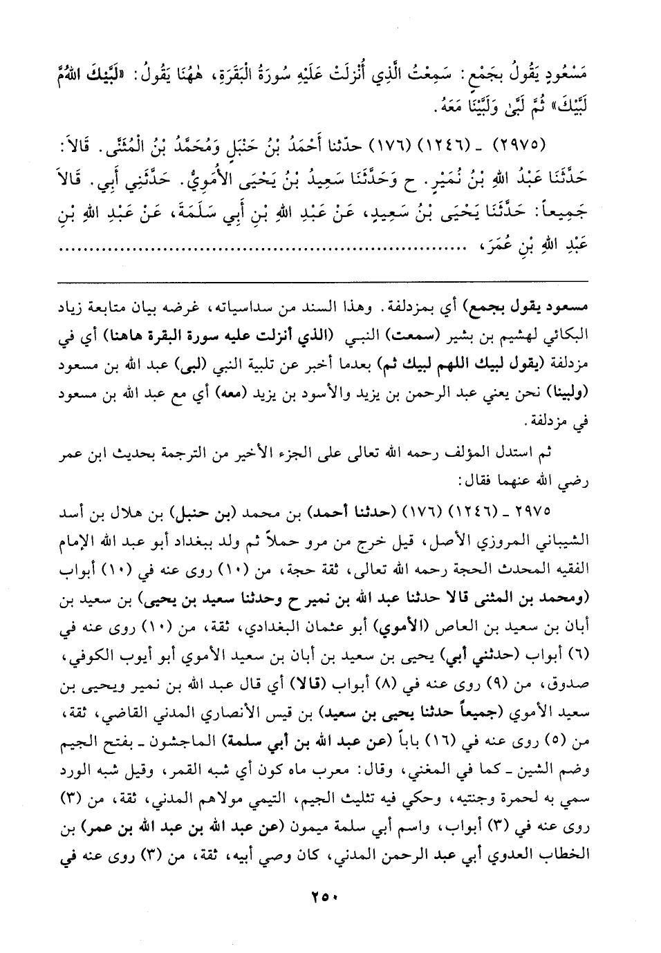 مَسْعُودٍ يَقُولُ بجَمْعٍ: سَمِعْتُ الَّذِي أُنْزلَتْ عَلَيهِ سُورَةُ الْبَقَرَةِ، فهُنَا يَقُولُ: "لَبَّيكَ اللهُمَّ لَبَّيكَ" ثُمَّ لَبَّى وَلَبَّينَا مَعَهُ.