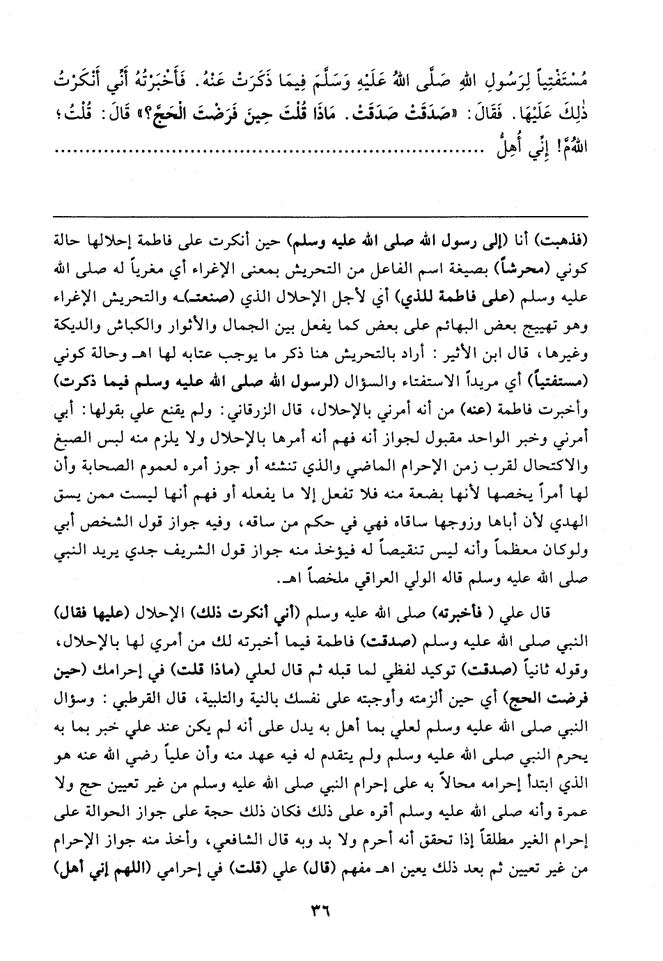مُسْتَفْتِيًا لِرَسُولِ اللهِ صَلَّى اللهُ عَلَيهِ وَسَلَّمَ فِيمَا ذَكَرَتْ عَنْهُ. فَأَخْبَرْتُهُ أَنِّي أَنْكَرْتُ ذلِكَ عَلَيهَا. فَقَال: "صَدَقَتْ صَدَقَتْ. مَاذَا قُلْتَ حِينَ فَرَضْتَ الْحَجَّ؟ " قَال: قُلْتُ؛ اللهُمَّ! إِنِّي أُهِلُّ