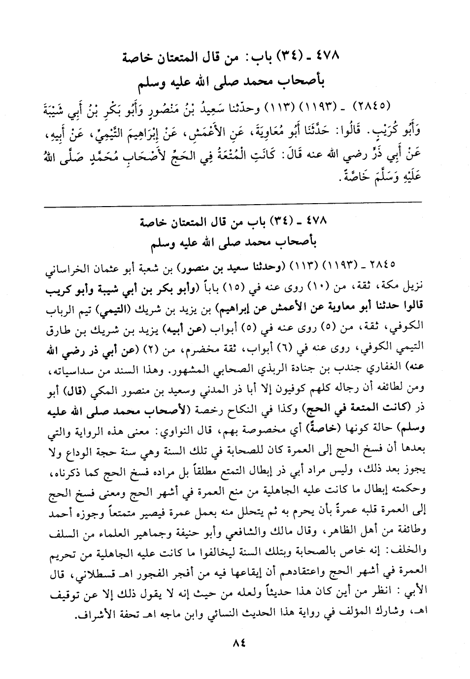 ٤٧٨ - (٣٤) باب من قال المتعتان خاصة بأصحاب محمد صلى الله عليه وسلم