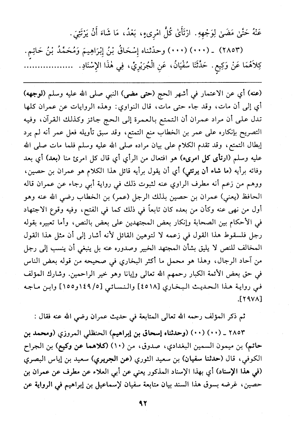 ٢٨٥٣ - (٠٠) (٠٠) (وحدثناه إسحاق بن إبراهيم) الحنظلي المروزي (ومحمد بن حاتم) بن ميمون السمين البغدادي، صدوق، من (١٠) (كلاهما عن وكيع) بن الجراح الكوفي، قال (حدثنا سفيان) بن سعيد الثوري (عن الجريري) سعيد بن إياس البصري (في هذا الإسناد) أي بهذا الإسناد المذكور يعني عن أبي العلاء عن مطرف عن عمران بن حصين، غرضه بسوق هذا السند بيان متابعة سفيان لإسماعيل بن إبراهيم في الرواية عن