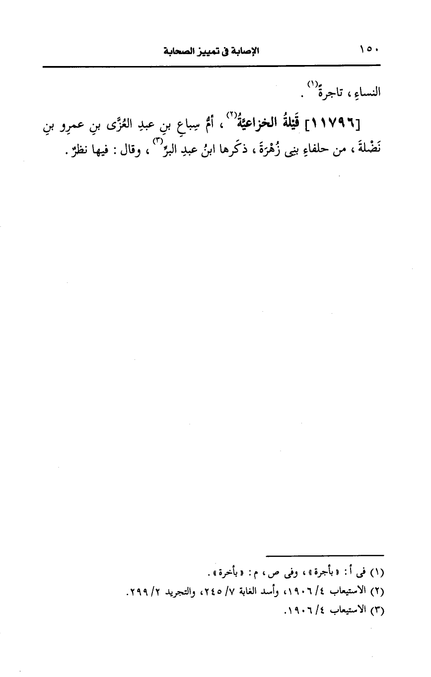 11796- قيلة الخُزاعيّة أم سباع بن عبد العزي بن عَمرو بن نضلة.
