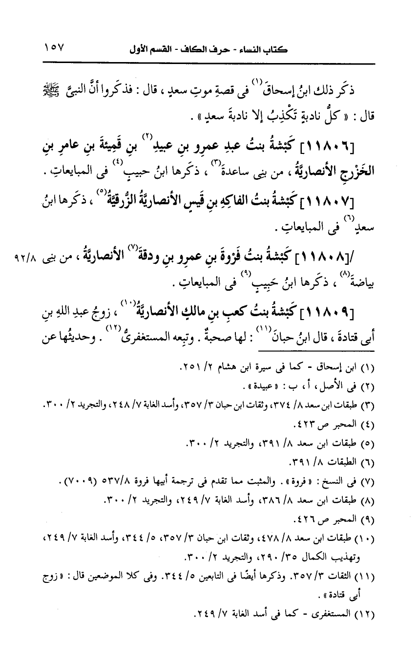 11809- كبشة بنت كعب بن مالك، الأَنصارِيّة زوج عَبد الله بن أبي قتادة.