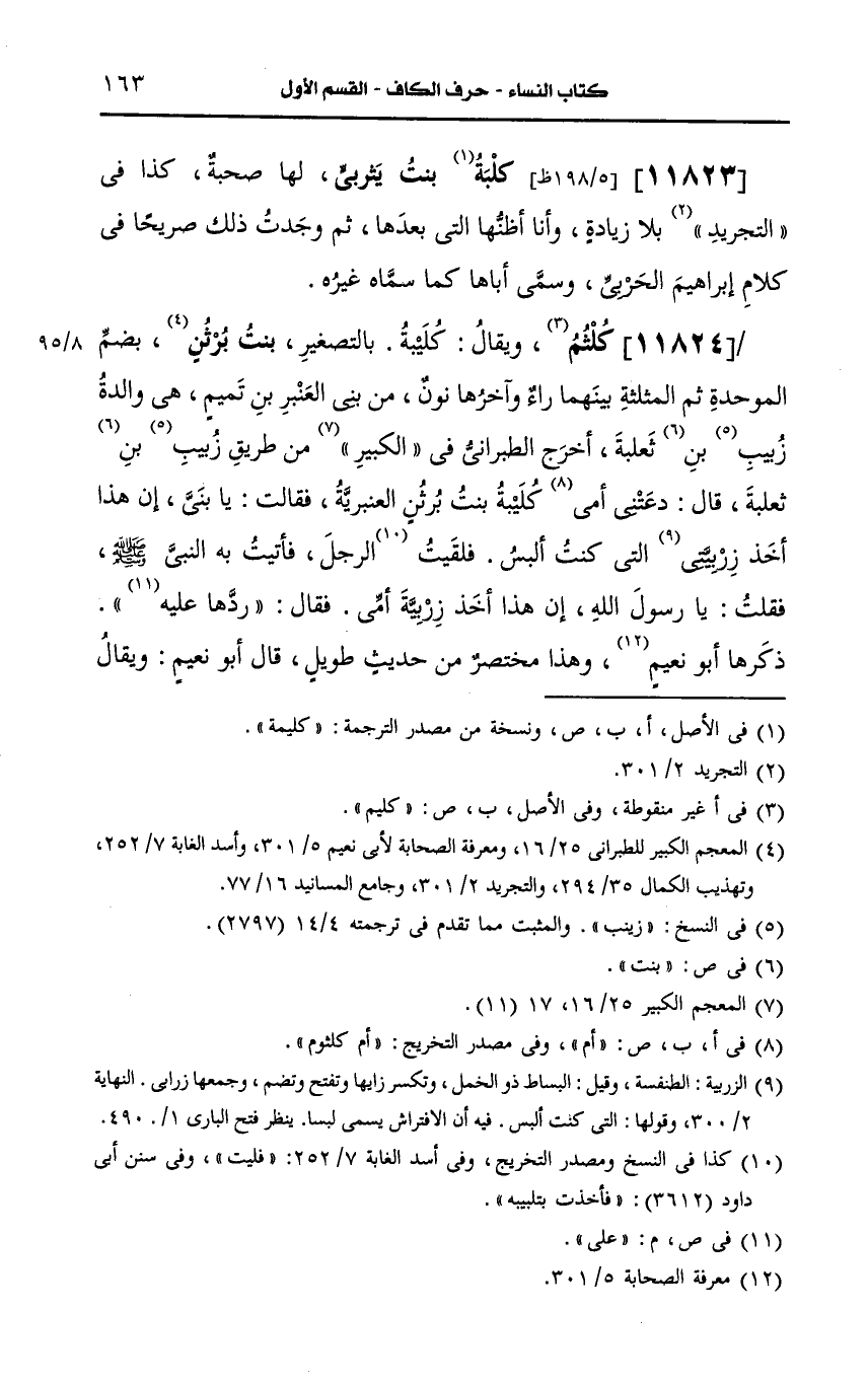 11824- كلثم، ويُقال: كليبة بالتصغير بنت برثن بضم الموحدة ثم المثلثة بينهما راء وآخرها نون من بني العنبر بن تميم.