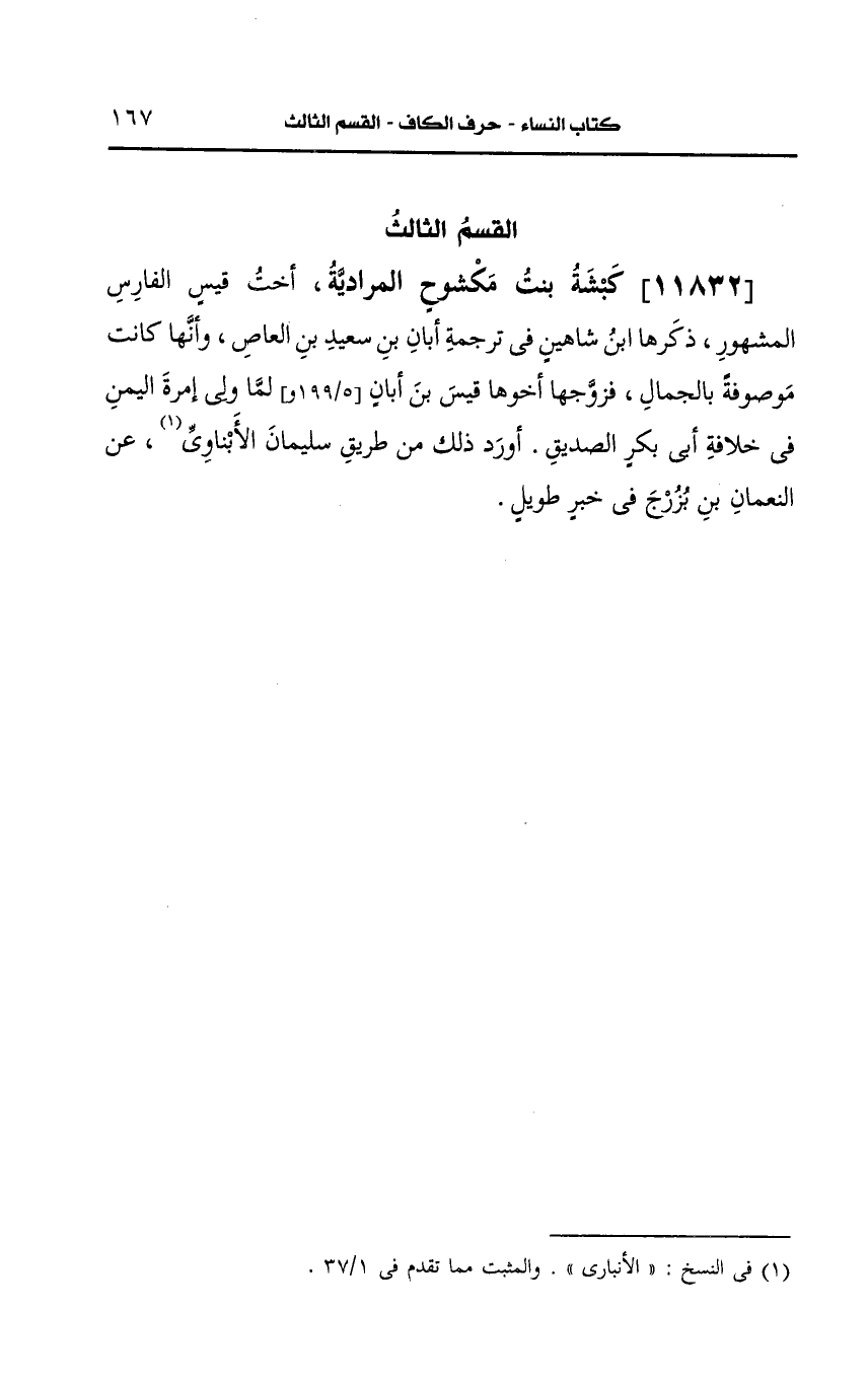 11832- كبشة بنت مكشوح المرادية أخت قيس الفارس المشهور.